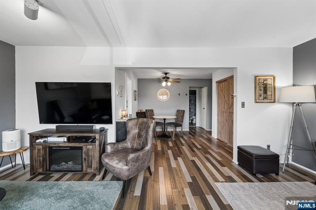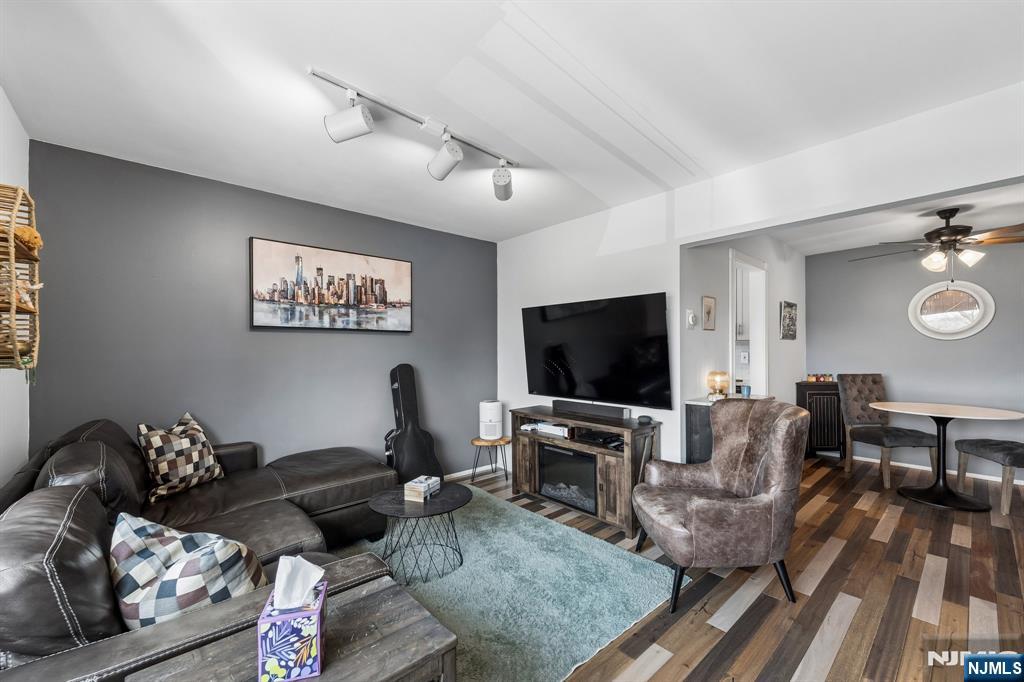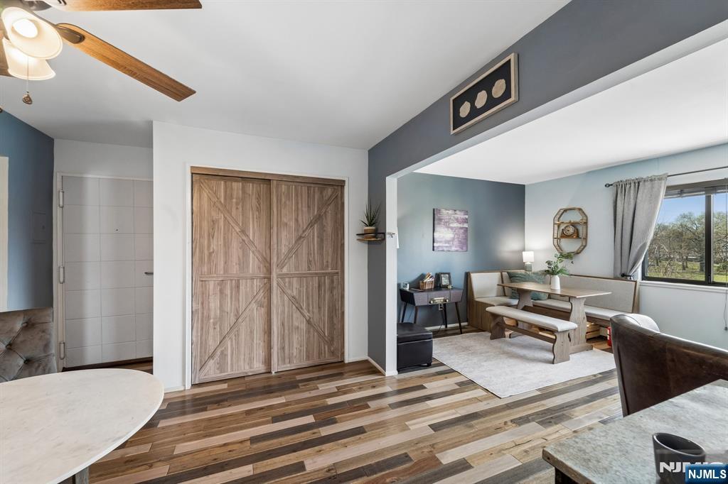 Experience the perfect blend of style and value in this stunning 3rd-floor corner unit. Flooded with natural light from a large picture window, you'll enjoy serene views of Riverside County Park and the water. This move-in-ready home features rustic hickory-planked floors, a fresh "light and airy" palette, and a modern kitchen. Highlights include trendy barn-style closet doors, a king-sized bedroom, and two versatile dining areas. Bathroom with a tub/shower. Enjoy secure lobby access from assigned parking, and convenient ground-floor coin-op laundry, With heat and hot water included in the low HOA, It's a smart, affordable alternative to renting. and a prime Lyndhurst location just minutes from Route 3 and NYC transit.