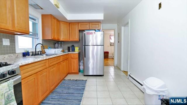 3 family investment opportunity or live-in and collect $$$ on the Harrison Border. 20 min to Harrison PATH. Well-kept, fully rented home. 2 units on 1st floor: front apt 4 rms, 2 bedrooms, 1 bath rented at $2,000 m/m, rear apt 5 rms, 3 bedrooms, 1 bath rented at $2,650 with basement access. 2nd-floor unit: 5 rms, 2 bedrms, 1 bath (includes finished attic); rented at $1,850 m/m; hardwood floors; tiled kitchen & baths. Finished basement with recreation room & full bathroom- separate entrance. 3 separate gas hot water baseboard heating systems, 3 water heaters. Separate gas & electric meters. State inspection valid until 10/7/2027.