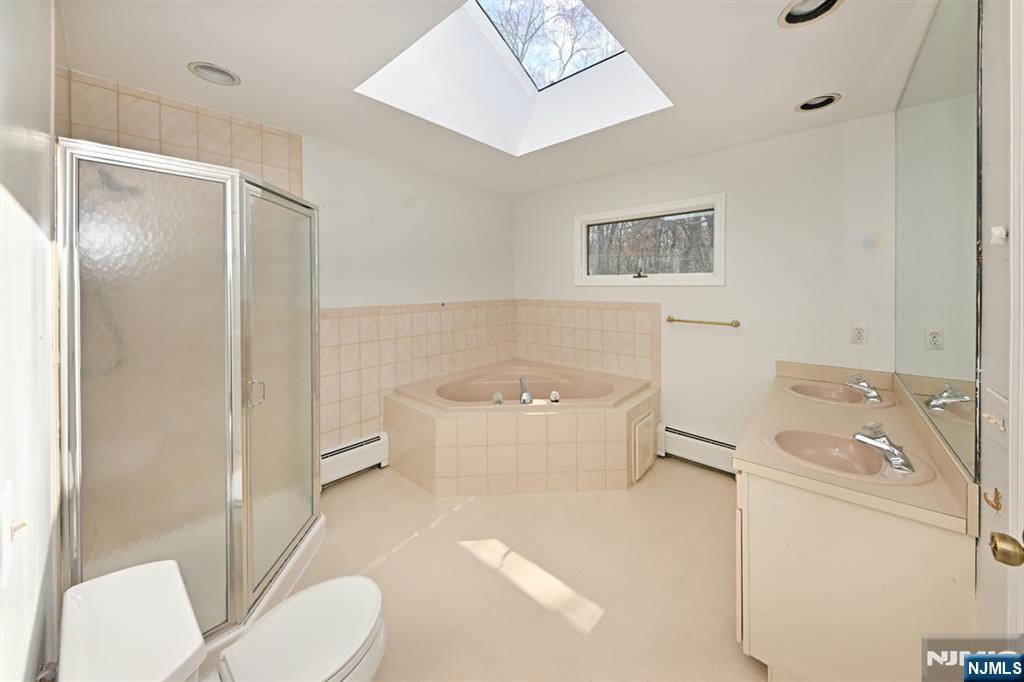 Welcome to Mountain Shadows, the premier townhome development in the highly desirable Franklin Lakes. This freshly painted townhome features three bedrooms and three and a half baths and is filled with natural light, creating a warm and inviting atmosphere. Upon entering, you are greeted by a foyer that leads to an updated kitchen equipped with stainless steel appliances, granite countertops, and counter seating. This space seamlessly opens into a family room with a vaulted ceiling and skylight. As you navigate through the home, you will encounter a spacious dining room and living room, both featuring elegant hardwood floors. The living area is enhanced by a gas fireplace and a sliding glass door that opens onto a deckâ€â€perfect for savoring your morning coffee. Completing the first floor are a powder room and an attached two-car garage. The second level features a generous sized primary suite, and a full bath adorned with a skylight that amplifies the flow of natural light. This level also includes a spacious second bedroom, distinguished by its vaulted ceiling and a charming window seat. There is an additional full bath and a conveniently located laundry room. The lower level features a third bedroom, complete with a full bathroom. Additionally, this space includes a spacious family room, an office or gym area, and ample storage. Mountain Shadows is a truly special townhome community – offering an outdoor pool, tennis courts, club house, and pickle ball courts.