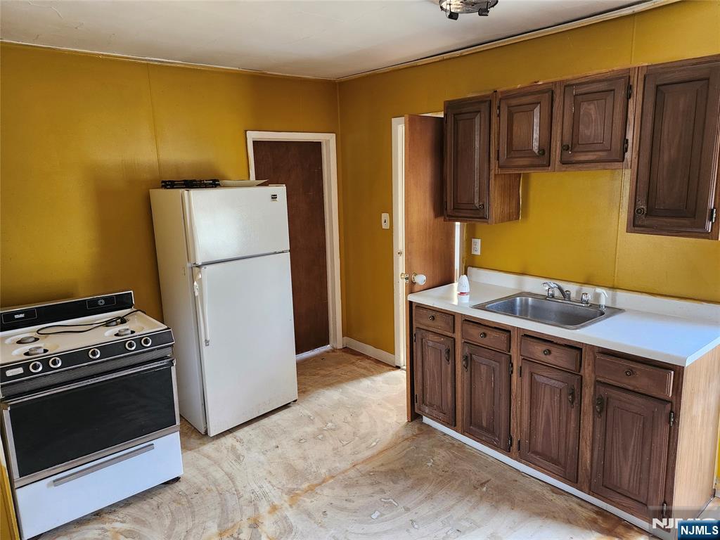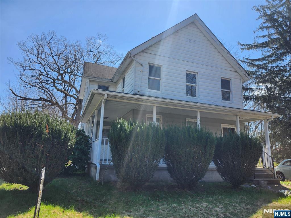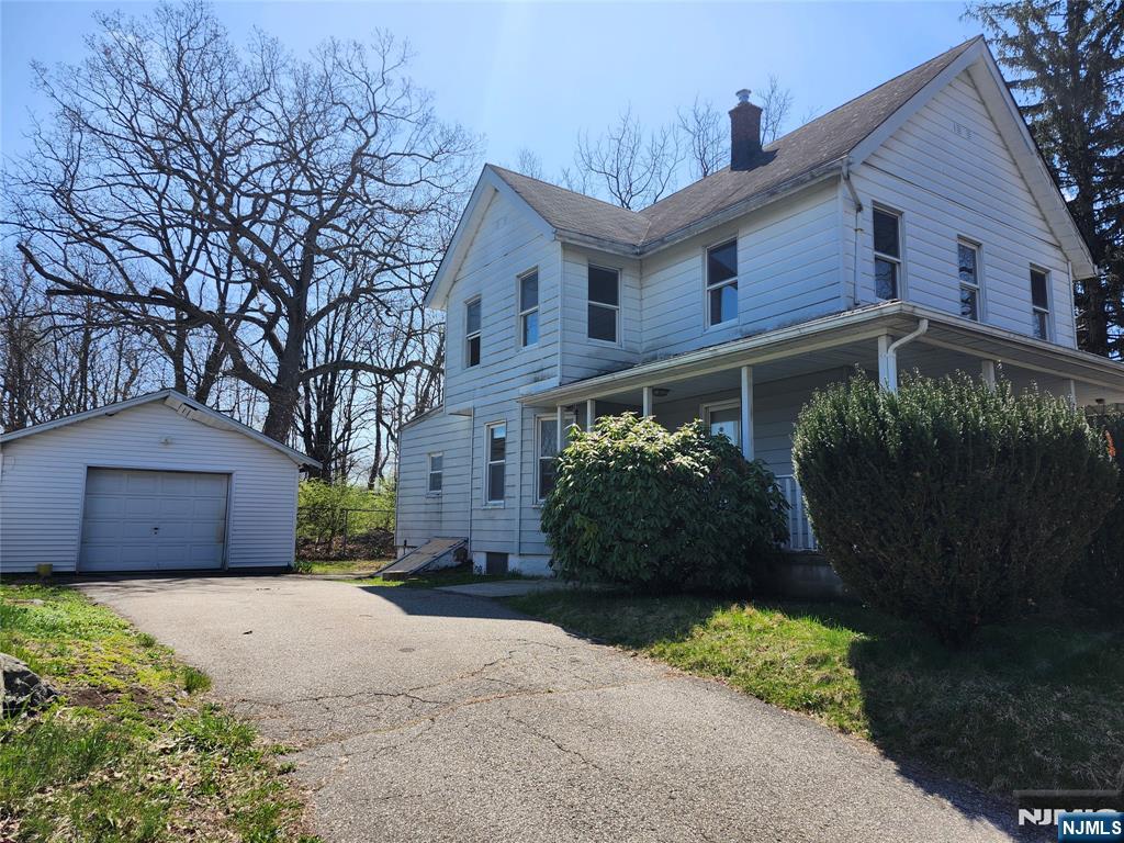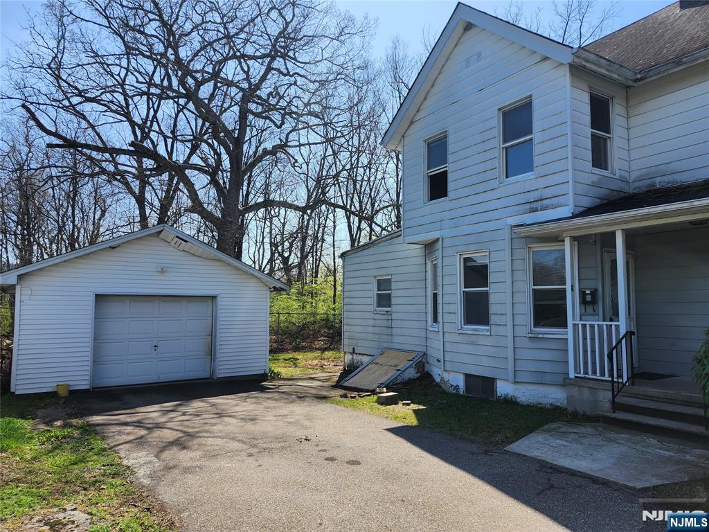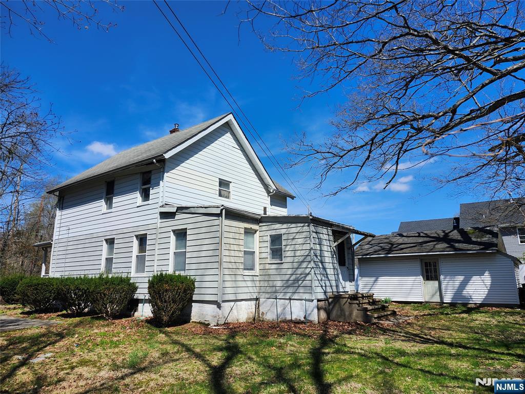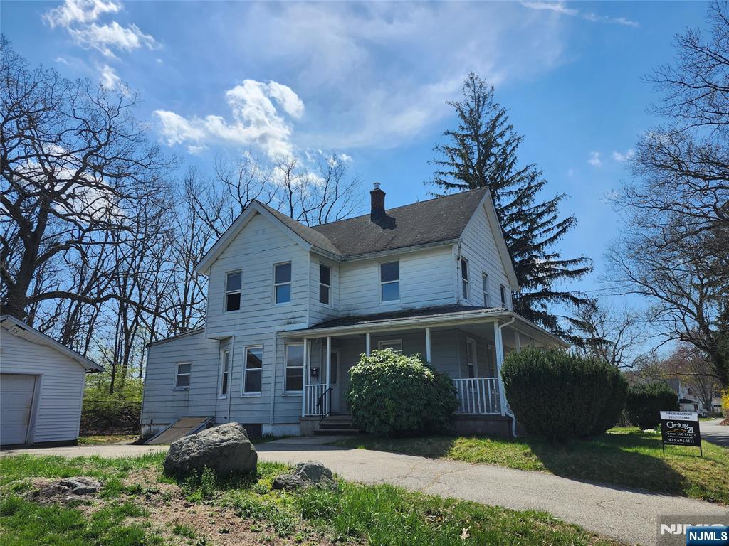 This property in Haskell offers endless potential as a non-conforming two-family home situated on a flat, oversized lot of approximately 190x80.The home features a wraparound porch, two separate entrances, and separate off-street parking for each unit. The first-floor unit includes two bedrooms, an eat-in kitchen, and a living room. The second-floor unit features one bedroom, a living room, and a kitchen. The property also includes a large detached garage