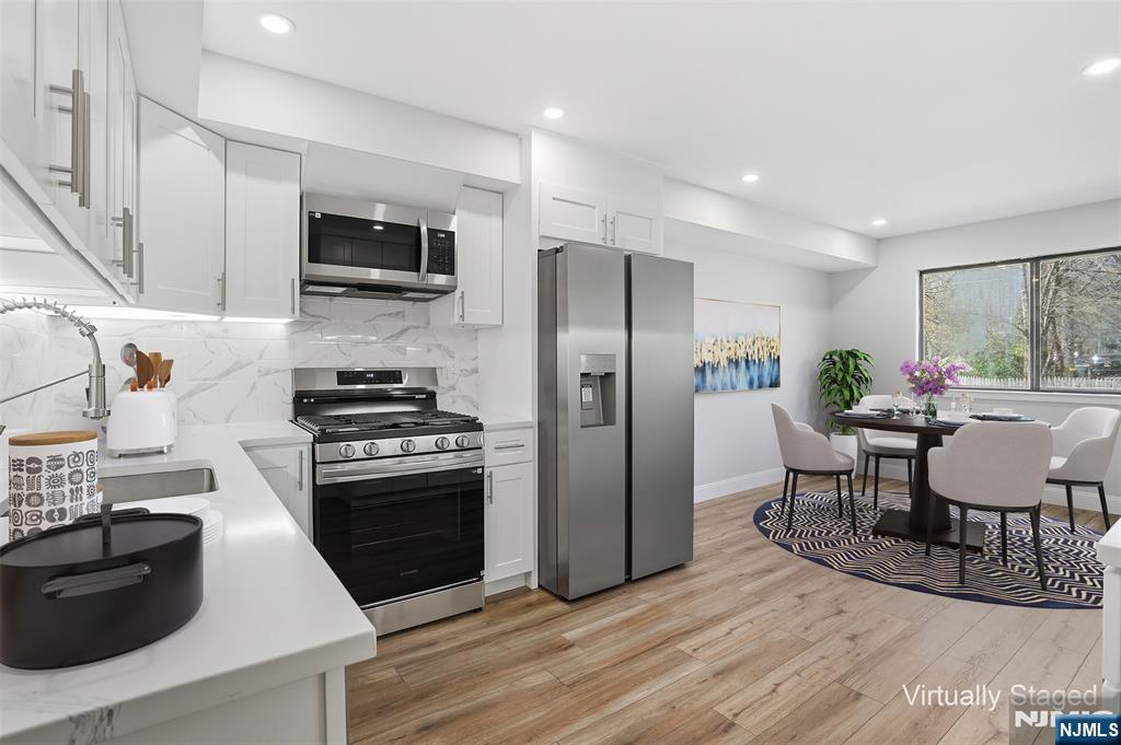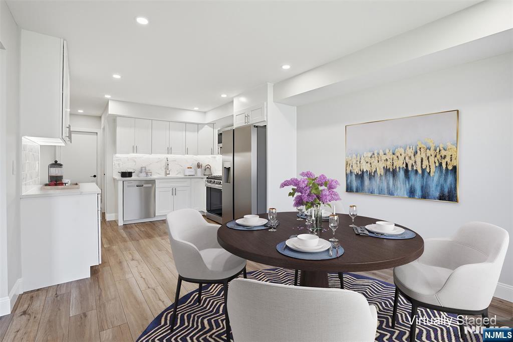 This renovated end-unit townhouse at 170 Knickerbocker Road offers a sophisticated and move-in-ready living experience in the heart of Englewood. As a desirable end unit, the home benefits from additional privacy and an abundance of natural light throughout its thoughtful floor plan. The interior features a spacious living room perfect for comfortable daily living and a modern eat-in kitchen designed for both functionality and style. On the upper level, the expansive primary suite serves as a private retreat, complete with a large walk-in closet and a dedicated en-suite primary bathroom. Two additional well-appointed bedrooms and a total of two full and one half bath provide ample space and versatility. Modern updates and quality finishes define the home, ensuring a turnkey transition for the new owner. Outdoor amenities include a private patio area, ideal for dining or relaxation, as well as a one-car attached garage supplemented by additional driveway space. This property combines the convenience of townhouse living with the space and feel of a traditional home, all situated in a prime location with easy access to local shopping, dining, and transportation.