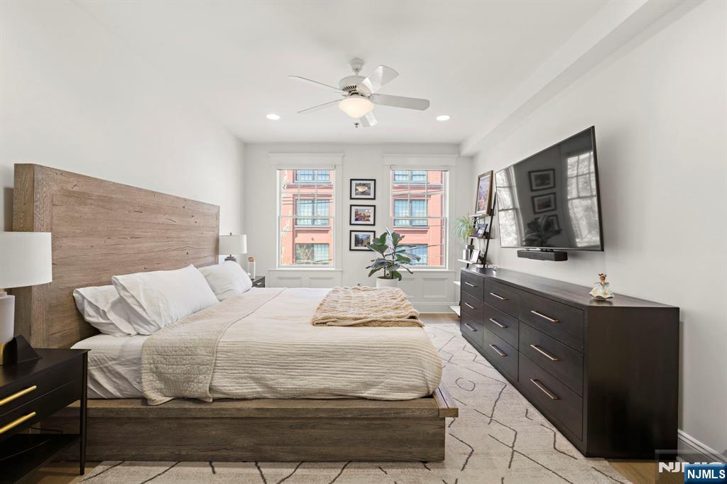 **OH Fri (4/24) 5-7PM & Sat (4/25) & Sun (4/26) 1-3PM** Expansive & stunningly renovated 2 bed/2 bath 1373 sqft home with balcony! The newly remodeled chef’s kitchen features custom walnut & white cabinetry, white quartz countertops and a huge island. The spacious living and dining area is filled with light from French doors leading to your very own 152sqft balcony. The master bedroom has a custom California walk-in closet and an ensuite bathroom. There is also a large second bedroom and second bath with jacuzzi tub. Also included are gleaming oak hardwood floors, in-unit washer/dryer, central AC, recessed lighting, Casablanca ceiling fans, electronic blinds, video intercom, and a private storage room. Conveniently located just steps from a municipal parking garage, bus to NYC, and Path train as well as shops, restaurants, and everything downtown Hoboken has to offer.
