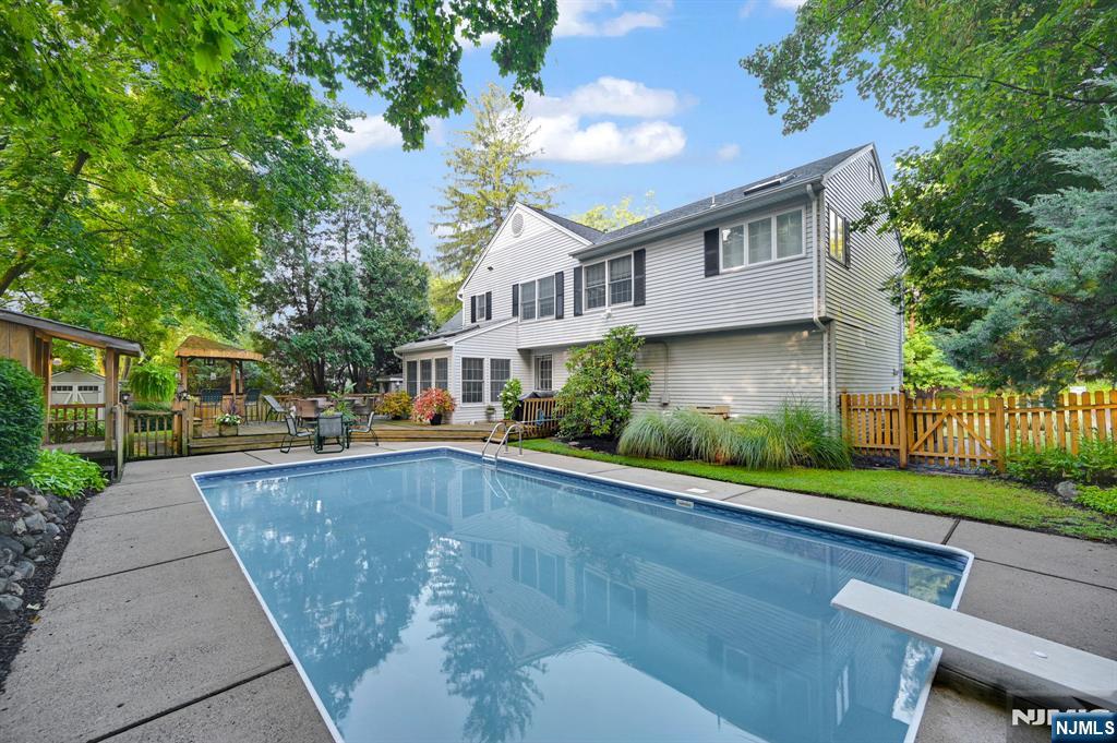 Gorgeous & pristine custom-built 4 bedroom, 2.5 bath Colonial with great curb appeal! Breezy front porch welcomes you into this unique home with stunning 2-story Great Room with corner fireplace, dining room with walls of windows and skylights, granite and stainless kitchen with breakfast bar and eating area, first floor laundry and powder room. There is an impressive primary bedroom with beautiful private bath, 3 additional bedrooms and lovely main bath. Relax and enjoy additional living space in the newly carpeted recreation room and office/den downstairs. Move right into this one of a kind home set on beautifully manicured property and private back yard oasis â€â€complete with expansive deck, cabana, pergola and inviting pool.