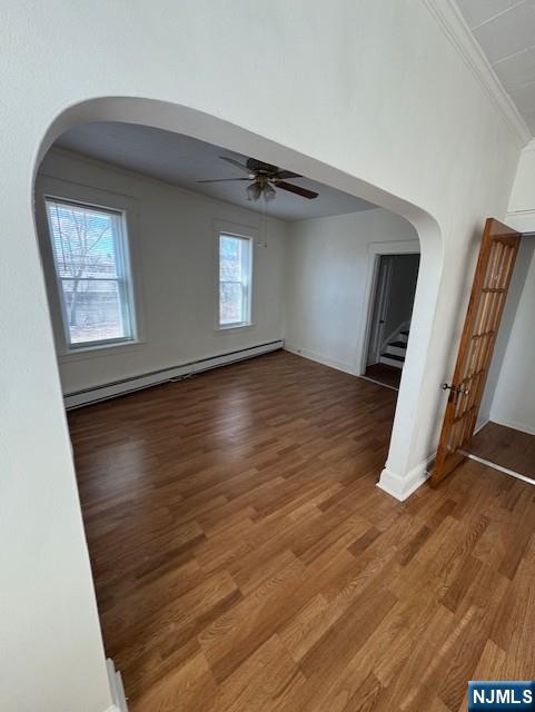Spacious 2nd floor apartment featuring an eat-in kitchen, living room, 3 bedrooms, and 1 full bath, plus two additional rooms and a second full bath on the 3rd level. Washer/dryer hookups available. Two parking spaces included.