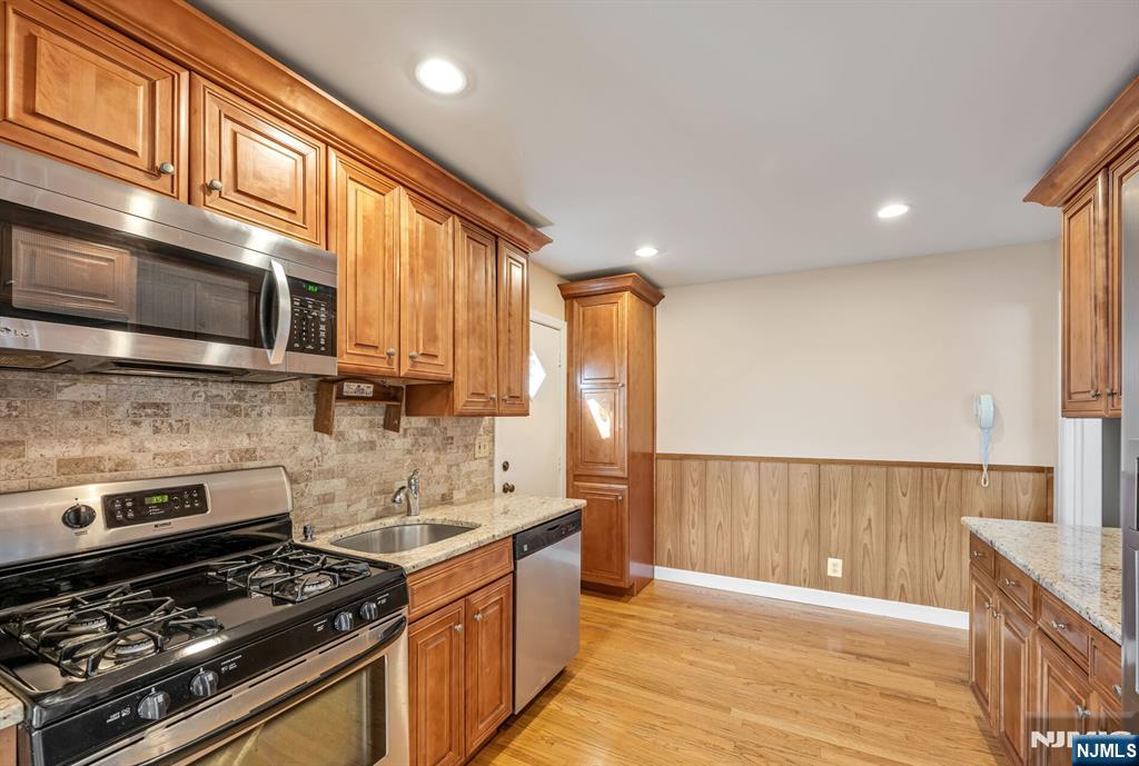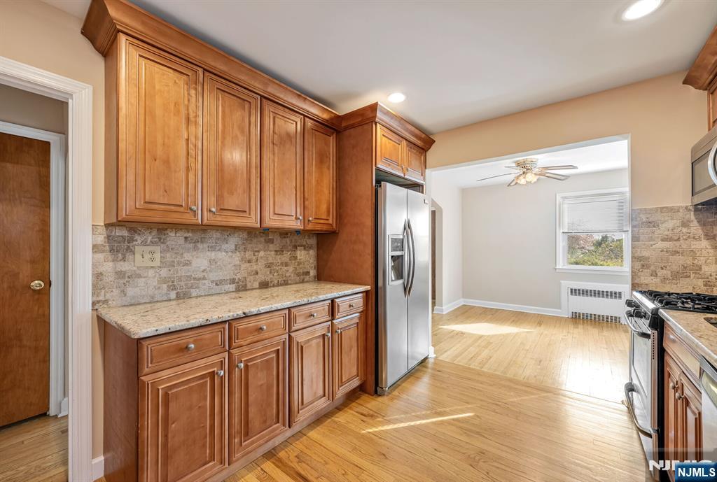 What homes are for sale in Leonia, NJ, under $680,000?. This one. Three-bedroom, one-bathroom brick single-family home.Interior features: hardwood floors throughout, custom-painted interiors, upgraded kitchen with granite countertops, stainless steel appliances, gas range, double-door fridge with ice maker,microwave above range oven. Renovated full bathroom, separate formal dining room, attached one-car garage, and a professionally installed French drain system. Does this home have expansion potential? Yes -- a high-ceiling full basement and full-height attic both offer immediate buildout opportunity for a fourth bedroom, second bathroom, family room, or recreation room without structural additions. Location: directly across from Leonia Tennis Club, steps from Leonia Swimming Club, and Sylvan Park. NJ Transit Bus Route 166 to the Port Authority Bus Terminal provides direct access to Midtown Manhattan for commuters. Quick access to the George Washington Bridge and Route 4. Leonia Public Schools, Bergen County, are recognized for consistent Board of Education academic achievement and strong district performance.