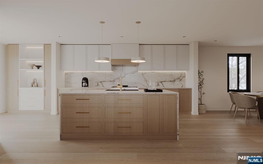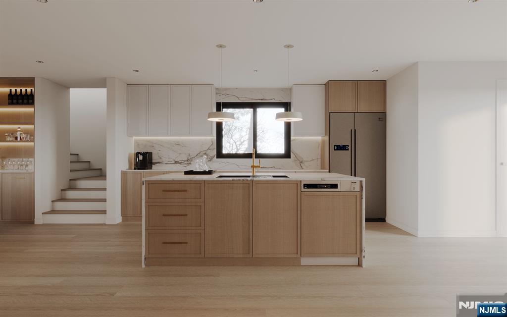 Beautifully crafted new construction home with a modern concept, ideally situated on a quiet, sought-after street in prime Tenafly. Filled with natural light from oversized windows, this luxurious residence offers a sleek open layout, refined finishes, and exceptional functionality for both daily living and entertaining. The main level features generous living and dining areas and a designer chef’s kitchen with a large island, breakfast area, and premium Thermador appliances. The second floor offers a serene primary suite with a walk-in closet and full bath, along with three additional bedrooms and a full bath. The finished lower level includes a spacious recreation room, full bath, guest bedroom or office, and ample storage. Complete with a four-zone sprinkler system, detached garage, brand new driveway, and professionally landscaped backyard, this move-in ready home delivers style, comfort, and modern luxury in an outstanding Tenafly location.
