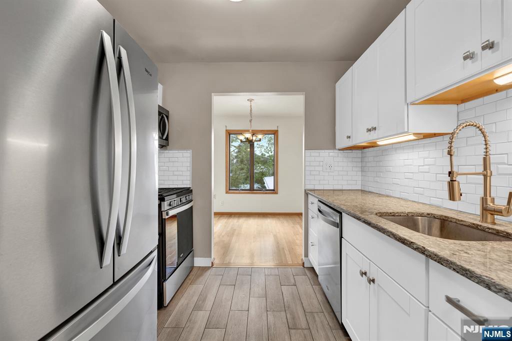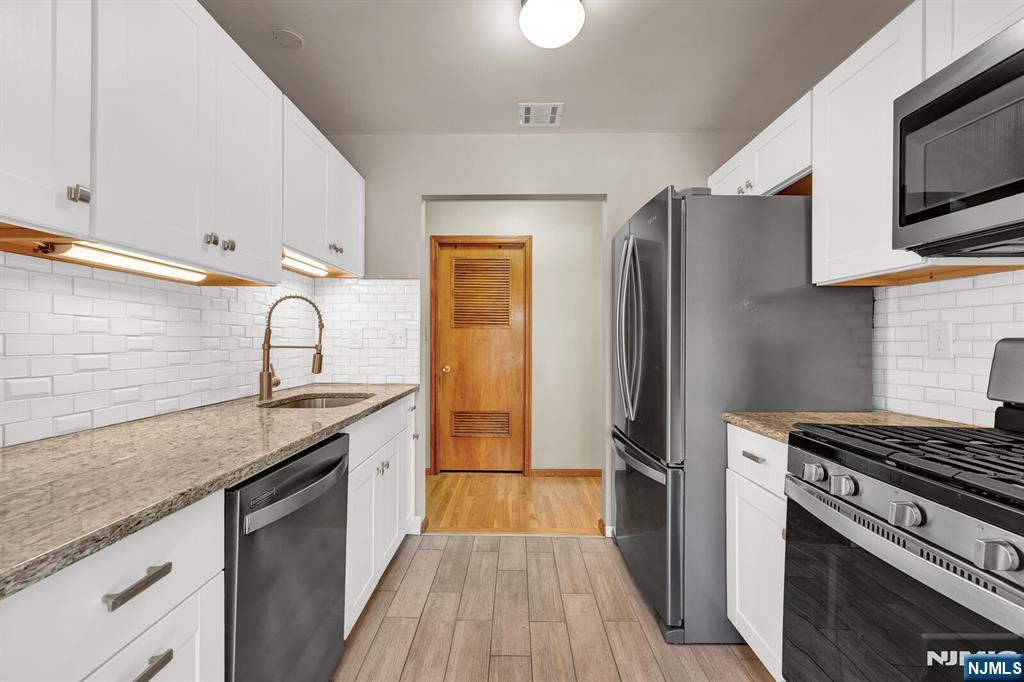 Bright, spacious, and beautifully updated, this one bedroom condo offers the perfect blend of comfort and convenience. Oversized rooms are filled with natural light in this corner unit and complemented by generous closet space. The modern white kitchen features stainless steel appliances, a gas range, and a dishwasherâ€â€ideal for everyday living and entertaining. Enjoy open, airy living spaces with lovely views, gleaming hardwood floors, and central air throughout. Parking is a breeze with one garage space that includes a workshop area, plus an additional outdoor space, for a total of 2 off street parking spots. The ground floor offers extra convenience with common laundry and large, private storage closets for each unit. Located just two blocks from the NYC bus and approximately four blocks from the Rutherford train station, this home is perfectly situated for commuters. You’ll also love being close to all the shops, dining, cafes, salons, and charm of downtown Rutherford. Come take your tour today!