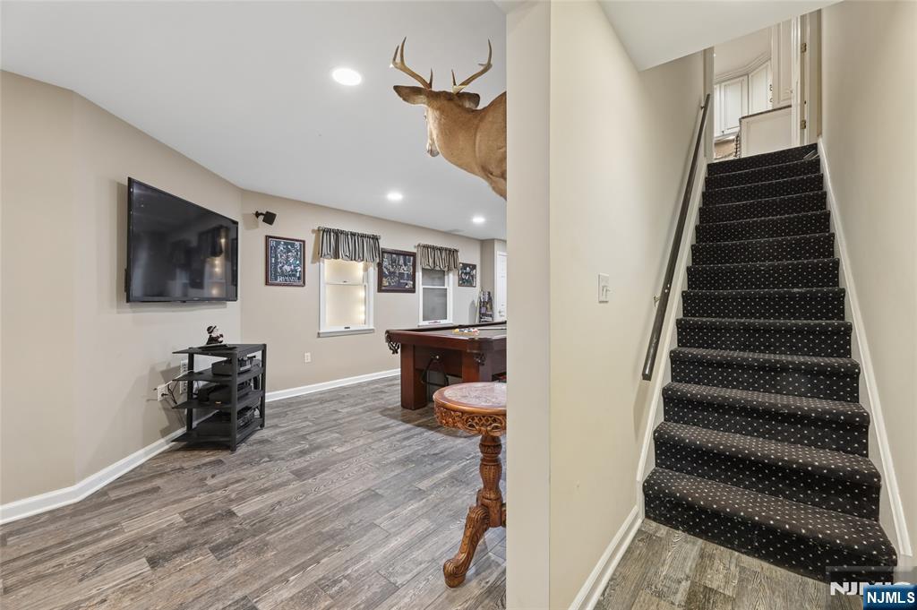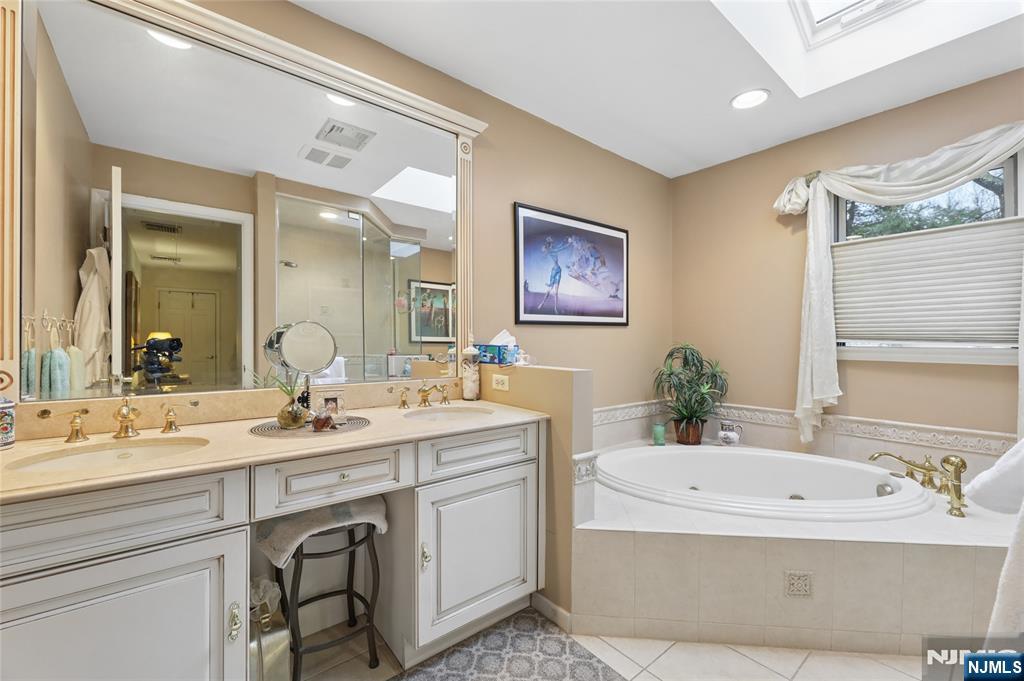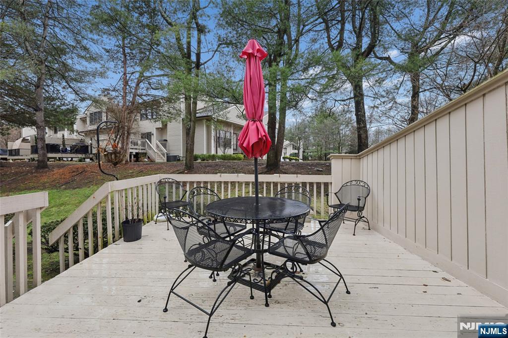LOOK NO FURTHER - Mountain Shadows of Franklin Lakes - a 64 unit private townhouse community with pool. tennis/pickleball! This large Woodland Model features 3 large bedrooms, 2.5 baths, full finished basement & 2 car garage. Chef's delight kitchen offers custom cabinetry, granite tops, island pantry, upgraded appliances: 2 full size Thermador ovens and 6 burner Viking cooktop with separate eating area. Family room has wood burning fireplace and sliding doors to deck. Formal LR/DR has hardwood floors, 2 story EF and Powder room. Level 2 opens to a bright loft overlooking EF, 3 bedrooms, full bath and laundry room. Primary Suite offers a walk-in closet, full bath with oversized glass enclosed shower, jacuzzi tub, double sink marble vanity and skylight. Lower Level provides additions living space with a rec room,, card room, french doors to gym/office, utilities and storage closets. Close to NYC transportation, shopping, middle school, houses of worship, and the Franklin Lakes Recreation Center with new playground rec fields and jogging paths...Great Schools-Low Taxes!