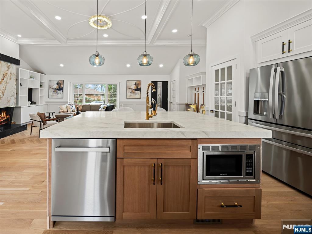 Welcome to this stunning 4-bedroom, 3-bath home in the sought-after Radburn section of Fair Lawn. Featuring herringbone hardwood floors and exquisite custom woodwork throughout, this home offers both character and modern elegance. The gourmet kitchen is the centerpiece, highlighted by an oversized Taj Mahal quartzite island, perfect for entertaining and everyday living. A cozy fireplace enhances the inviting living space, while spacious bedrooms and well-appointed baths provide comfort and flexibility. Located in one of Fair Lawn’s most desirable neighborhoods, enjoy access to top-rated schools, beautiful parks, and Redburn's unique community setting. Convenient to NYC transportation, shopping, dining, and major highways, ideal for commuters. A rare opportunity in a prime location!!