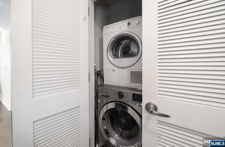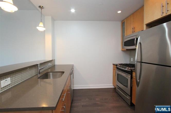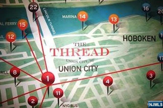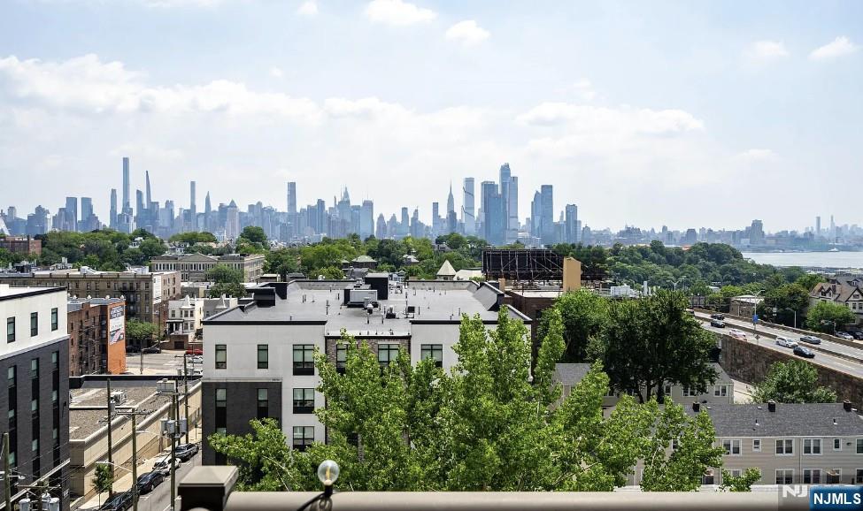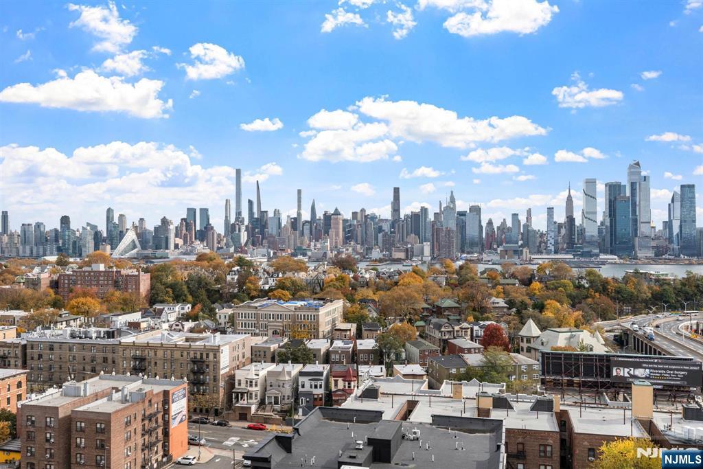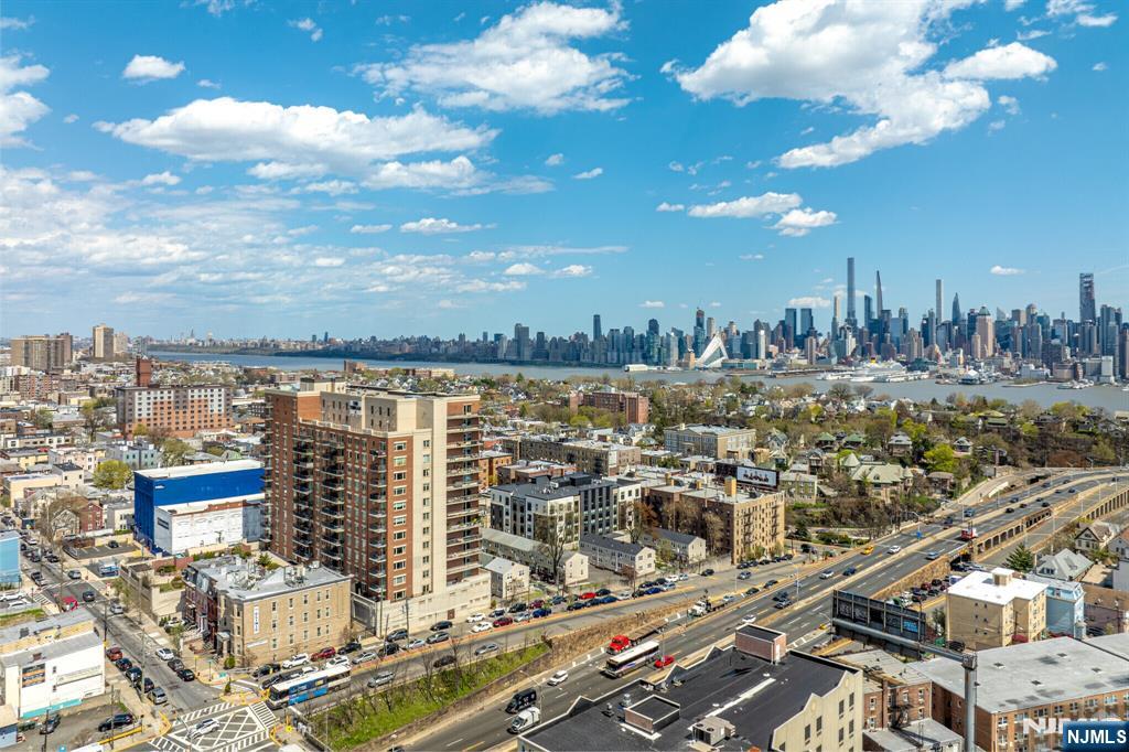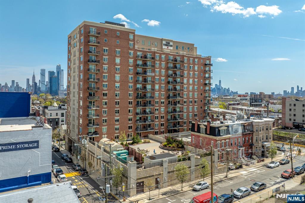 One Stop into NYC port authority station, phenomenal investment opportunity. Easy to rent out East facing Manhattan skyline view 1 Bedroom plus a Den used as a Second Bedroom, in an outstandingly managed and maintained THREAD condominium. One full bath and additional half bath, in unit washer and dryer, Kitchen with breakfast bar, 2nd floor large lounge and Children's play room, large terrace/patio. Unit comes with designated, deeded indoor parking garage space. Photos have been virtually touched up. Calling all investors or first time buyers needing to commute to NYC.