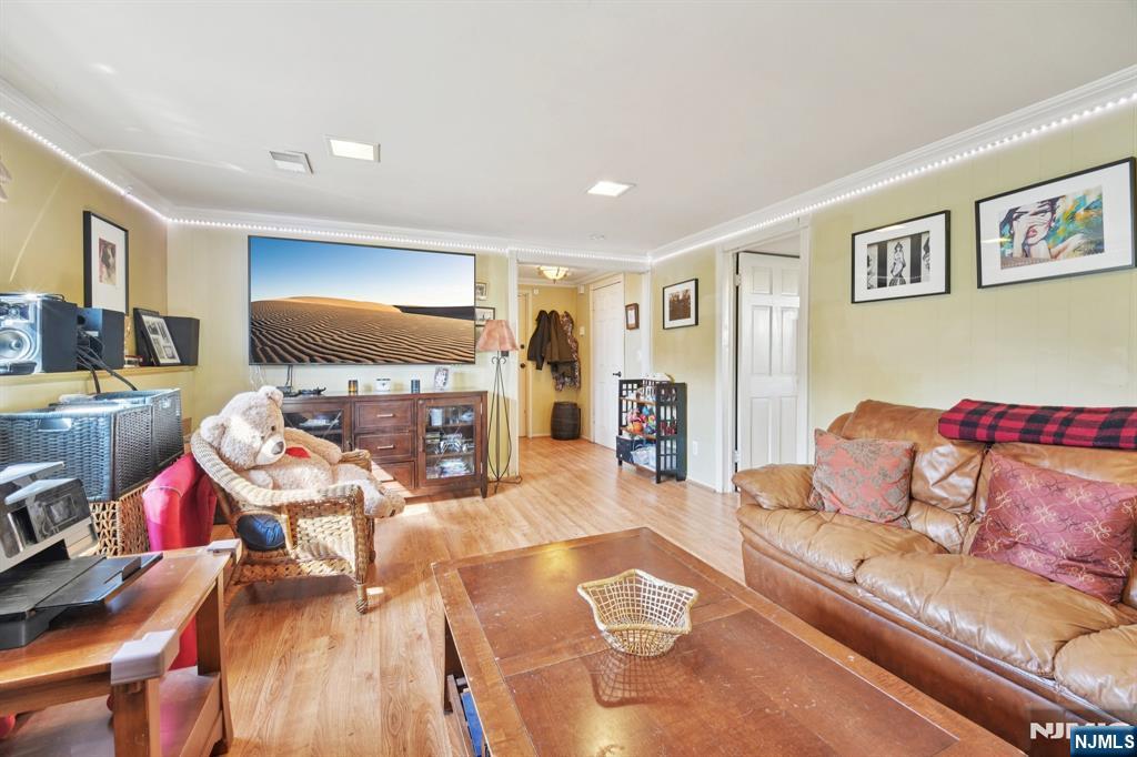 For private showings, call Gary 201-776-6000. Nestled among million-dollar homes, this beautiful bi-level residence offers approximately 2,500 square feet of comfortable living space and an ideal setting for both everyday living and entertaining. The spacious, level backyard is a standout feature, complete with a newer paver patio, built-in sitting wall, and storage shedâ€â€perfect for hosting gatherings or relaxing outdoors. The ground level includes a versatile bedroom or den, a welcoming family room, a half bath with utilities, laundry area, and direct access to the backyard. This level also provides entry to the oversized two-car garage. Upstairs, the main living level features three generously sized bedrooms, including a primary suite with its own private full bath. A newer custom kitchen with a breakfast bar flows seamlessly into the dining room and large living room. Abundant natural light fills the space, creating a bright, open, and airy atmosphere throughout.