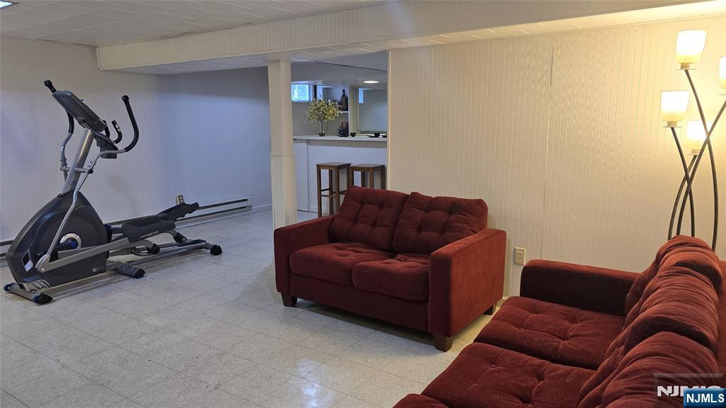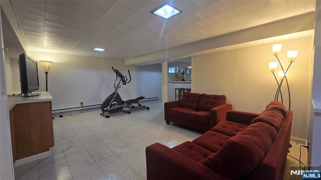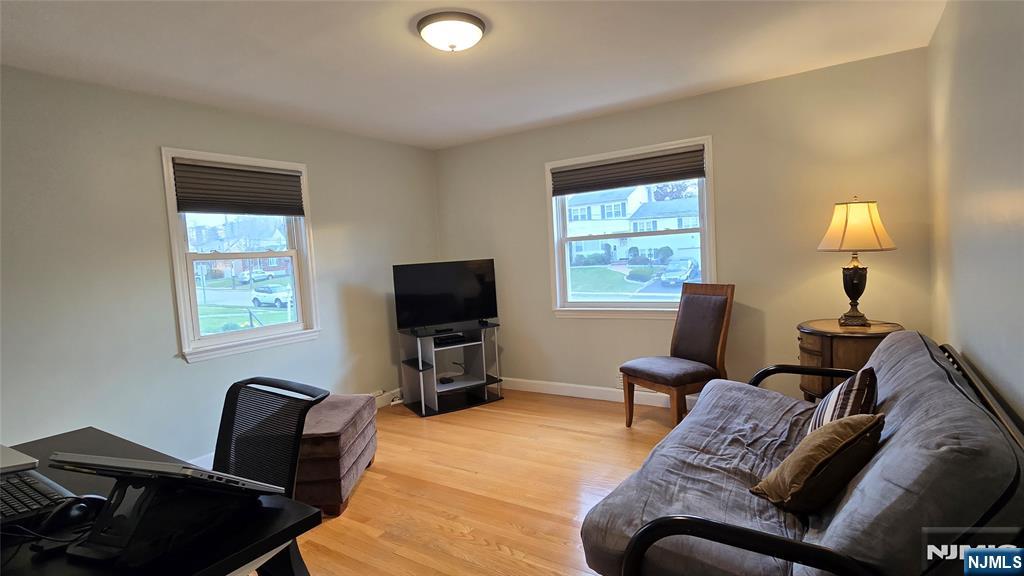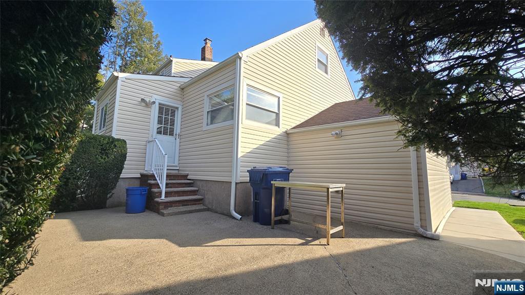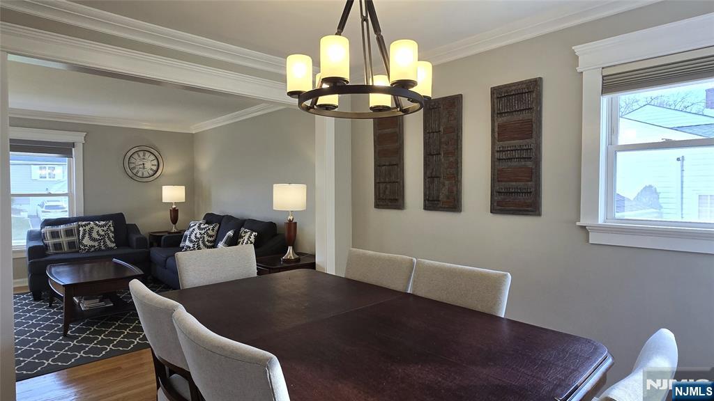 Ideally located on the Maywood border, this updated 4-bedroom, 2.5-bath home offers the charm of a Cape Cod with the spacious, formal feel of a Colonial. Situated on a rare, oversized lot, the main level features a sophisticated circular flow where wide architectural cased openings and elegant crown molding seamlessly connect the sun-drenched living room and formal dining area. The interior is further enhanced by custom Hunter Douglas blinds, a fully modernized kitchen (2024) with quartz countertops and a gas range with built-in air fryer, and a freshly renovated full bathroom (2024). The first floor provides two bedrooms and an updated full bath, offering the convenience of main-level living or a dedicated private workspace. Upstairs, two additional spacious bedrooms share a stylish full bath, including a primary with an expanded custom closet. The bright, newly painted lower level serves as a versatile, climate-controlled retreat with Central Air and dedicated heat. This multi-zone space is naturally divided for a large family room and exercise/office area, featuring a wet bar and half-bath. Completing this level is an oversized laundry and storage room, offering exceptional organization and utility space. Enjoy outdoor living on the private patio surrounded by hedges and a generous backyard. Unbeatable location: steps away from the NYC Express Bus and minutes from major shopping. Please note: Most pictures were taken prior to seller moving out. Move-in ready comfort!