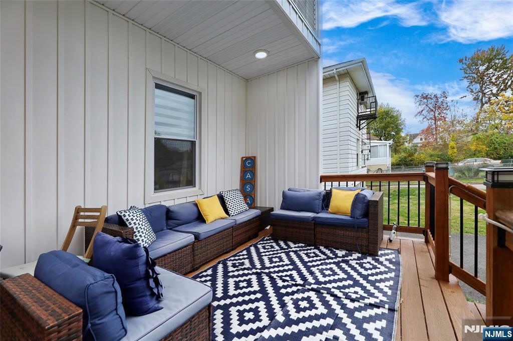 Only 3 years young, this exceptional 4-bedroom, 3-bath residence offers a rare opportunity to own a modern home with high-end finishes and timeless design throughout. The home features a bright open-concept layout with soaring ceilings and a striking modern staircase set beneath a dramatic double-height ceiling with a statement chandelier. The gourmet kitchen is designed to impress, showcasing quartz countertops, premium stainless-steel appliances, a custom glass-door pantry with illuminated shelving, and a sleek bar with a wine cooler—seamlessly flowing into the living and dining areas for effortless entertaining. The first floor offers a spacious bedroom and full bath, ideal for guests or flexible living. Sliding glass doors from the dining area open to a large deck overlooking a private backyard, creating a seamless indoor-outdoor lifestyle. Upstairs, the primary suite is a true retreat with vaulted ceilings, two walk-in closets, and a spa-inspired bathroom. Two additional bedrooms, complemented by a private balcony, and a cozy office nook in a whole way. Additional highlights include a full basement with laundry and abundant storage, as well as a detached two-car garage. Ideally located in Little Falls, just minutes from NYC-bound train and bus service, top-rated schools, parks, and local cafes. A true turnkey residence offering style, comfort, and convenience from day one.