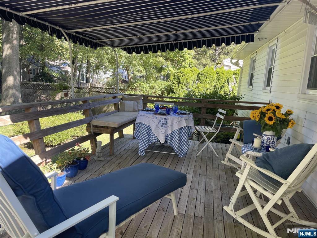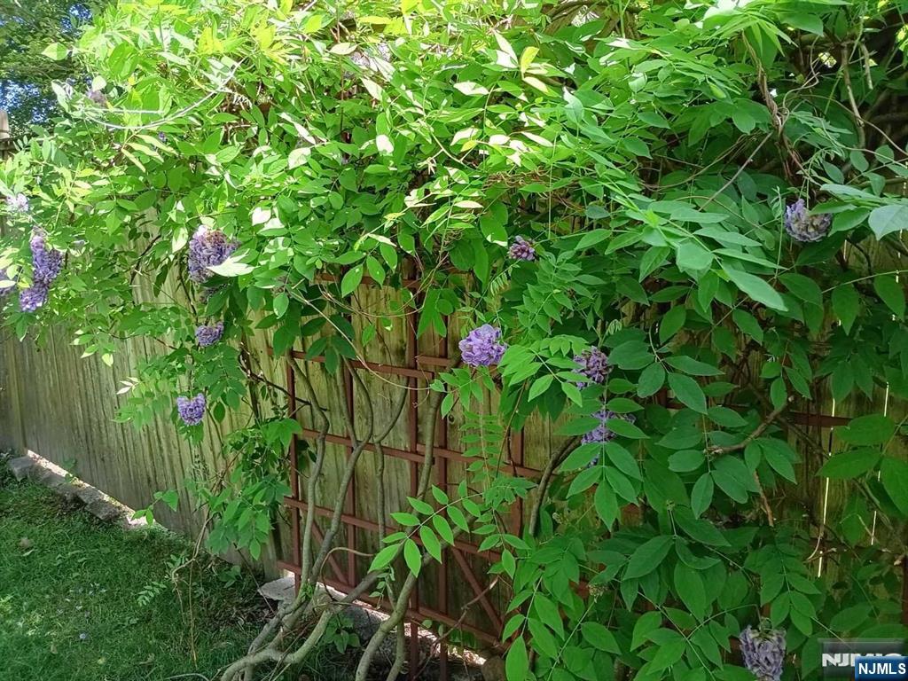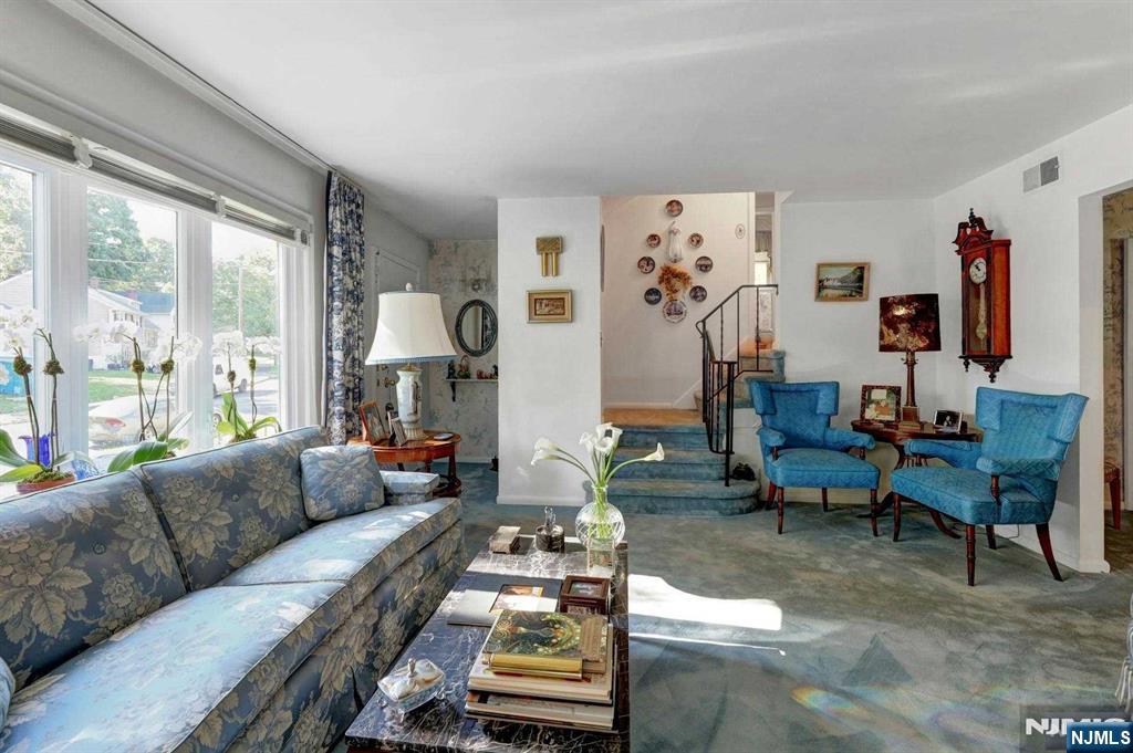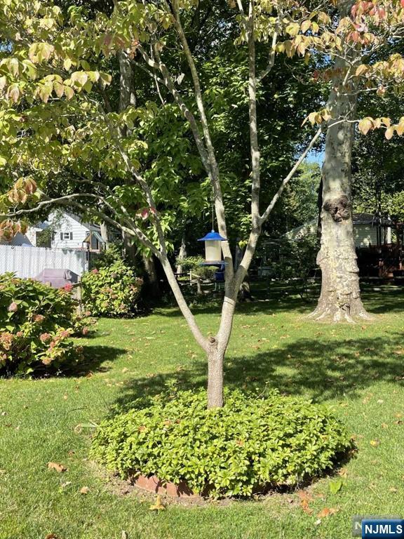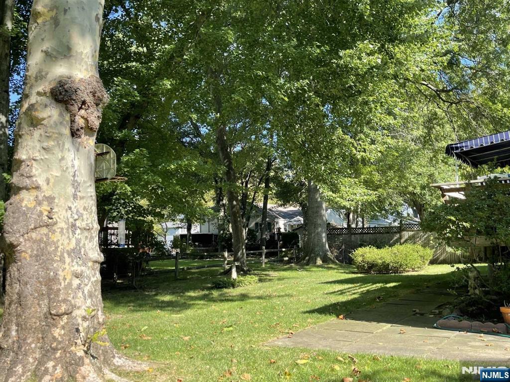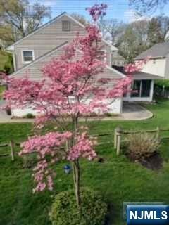 Delightful authentic Mid-Century Modern 3 BR Split Ranch offered by original owner. Highly coveted residential neighborhood. Gorgeous level property. Charming split rail fence surrounds an oasis of mature evergreen, hydrangea, wisteria, roses, dogwood, catalpa, maple & a 66 year old pin oak. Large sun-flooded LR with bay window adjoins the DR. Original oak flooring under carpeting. The Dine-In Kitchen (w/double DeLonghi wall oven, 4 burner gas range, DW, original mid-century Boomerang pattern Formica counters, and 14 large cabinets) opens to an expansive deck with custom awning. Two main floor corner BRs & updated Bathroom. Upstairs offers a large Primary BR w/PR. Lower Level has Wood Paneled FR, and Laundry/Utility Area. Superb storage throughout. Newer CAC, updated windows, Stand-by Onan 20 W Generator, and Irrigation System. Fabulous location close to school, athletic field and Gritman Park. 1 mile to downtown Westwood shops, restaurant, & train, and .25 mile to NYC bus.