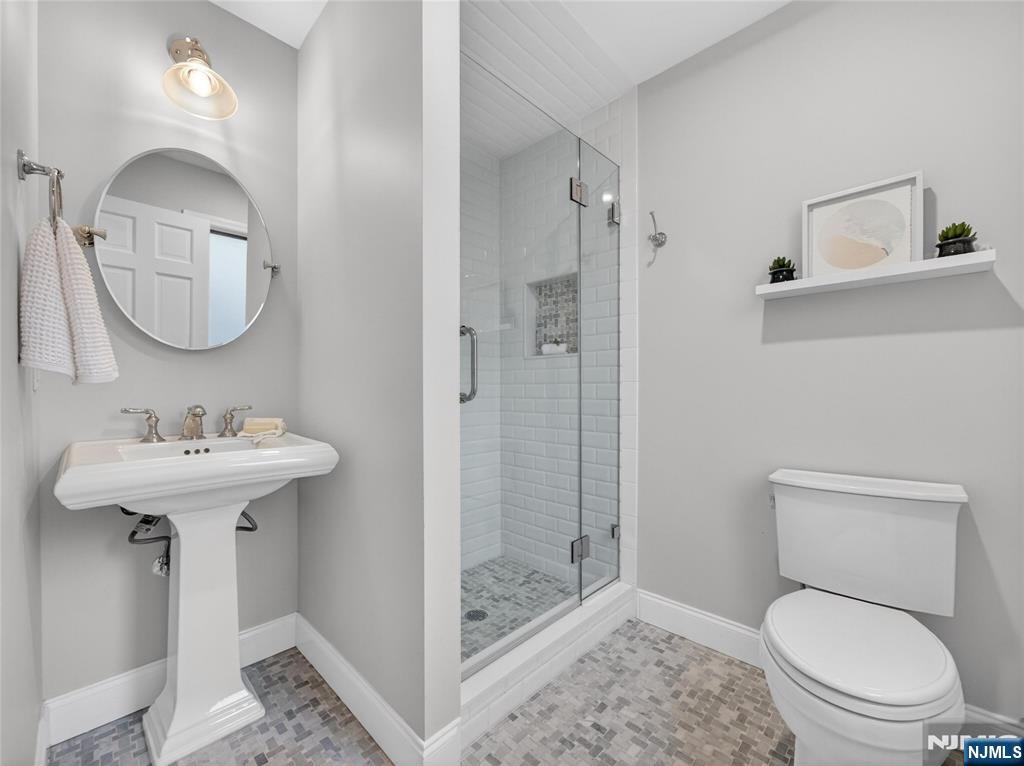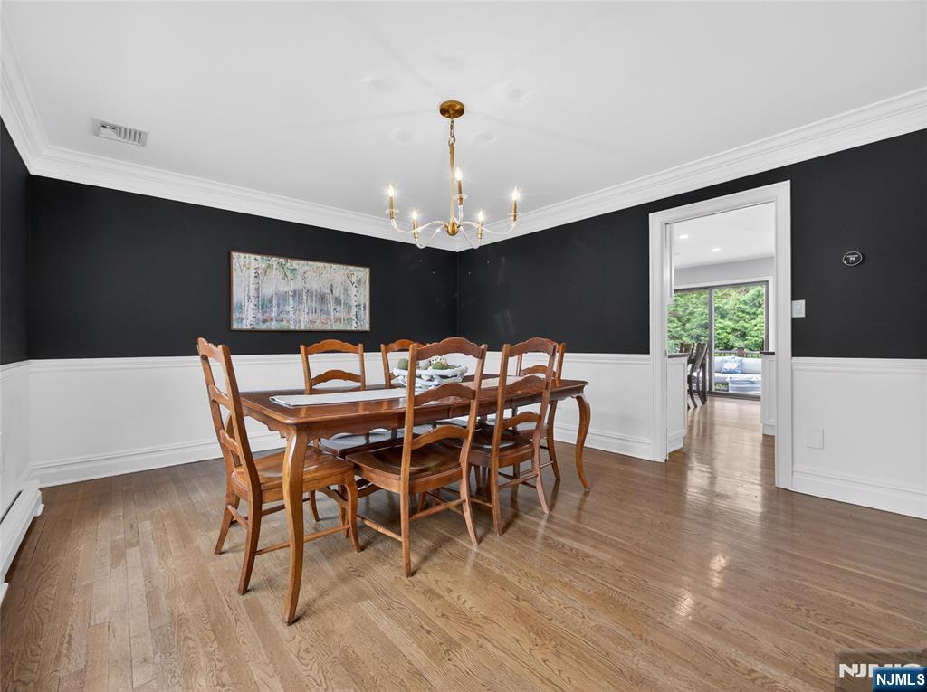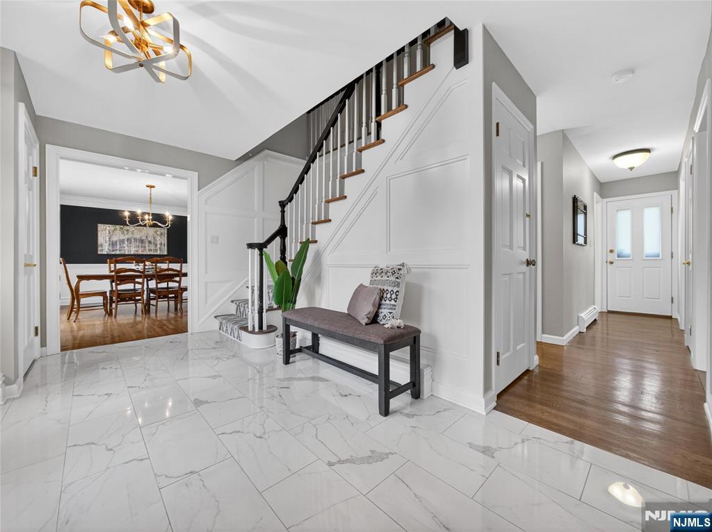 Welcome to this fully updated Colonial set on a cul-de-sac, with nothing to do but move right in. A stunning double-height foyer with beautiful moldings and thoughtful details sets the tone throughout. Spacious living and dining rooms flow into the updated white eat-in kitchen with high-end cabinetry, stainless steel appliances, large center island, and access to a new composite deck overlooking the meticulously landscaped private yard. The kitchen opens to a soaring great room with a gas fireplace, creating the perfect gathering space. A main-floor bedroom and beautifully updated full bath add flexibility. Upstairs, the spacious primary suite features a spa-like bath and walk-in closet, along with 3 additional large bedrooms and an updated hall bath. The lower level offers high ceilings and grade-level access, with a mudroom off the 2-car garage, laundry room, large rec room with gym space, private office, and powder room. Outside, enjoy a private backyard retreat with paver walkways and patios, outdoor lighting, sound system, and gas fire pit. A beautifully finished home in a prime cul-de-sac location. *Correct 2025 Taxes $23,765*. WANT MORE INFO CONTACT LISTING AGENT NICOLE MINETTI @ 201-388 -0077 //nicole@minettidennisgroup.com