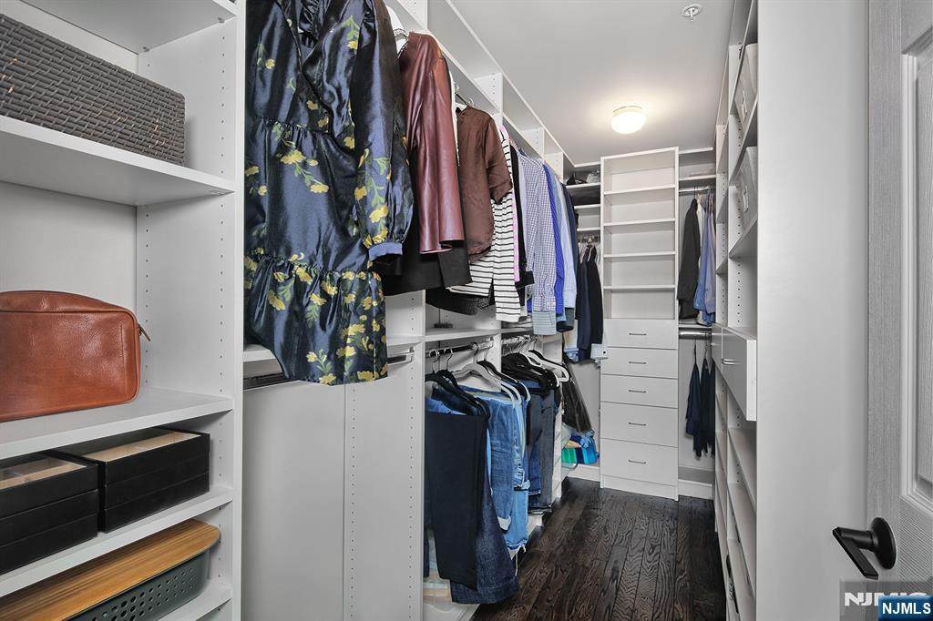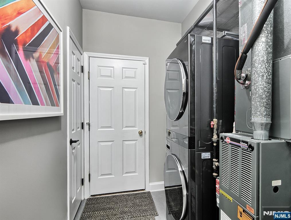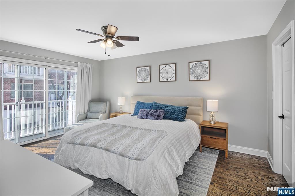 Experience refined living in this chic Bull’s Ferry–Bergen–style corner home, ideally situated on a quiet cul-de-sac. The open-concept living and dining area flows seamlessly to a private patio through a glass slider, creating an inviting space for everyday living and entertaining. A private balcony extends from the primary bedroom, offering an additional outdoor retreat. Interior features include hardwood floors, a pull-down TV mount above the fireplace, and a beautifully updated galley kitchen with granite countertops, a custom backsplash, garbage disposal and stainless steel appliances. Thoughtfully designed closet shelving enhances storage throughout the home. The primary bathroom has been elegantly renovated with a new shower, toilet, flooring, and a Calacatta Quartz countertop. All bathrooms feature new mirrors, lighting fixtures, and hardware. Additional upgrades include new blinds on every window, updated electrical outlets and switches, and freshly painted doors with modern hardware. Smart-home enhancements include a Google Nest thermostat and Alexa-enabled light switches. Parking accommodates two vehiclesâ€â€one in a private garage equipped with storage shelving and an EV charger, and one in the driveway. This sought-after community offers exceptional amenities, including two pools with Jacuzzis, a tot lot, and a complimentary shuttle to the NY Waterway ferry. The 158 bus to NYC is just steps away, and the home is conveniently close to restaurants and shopping.