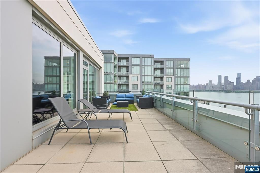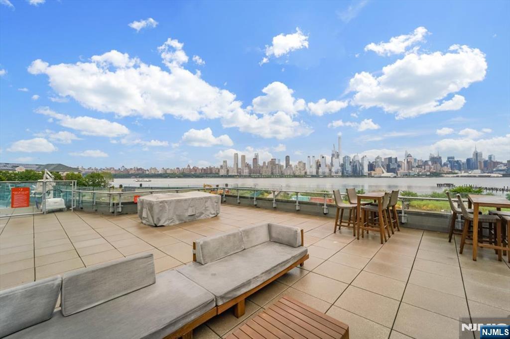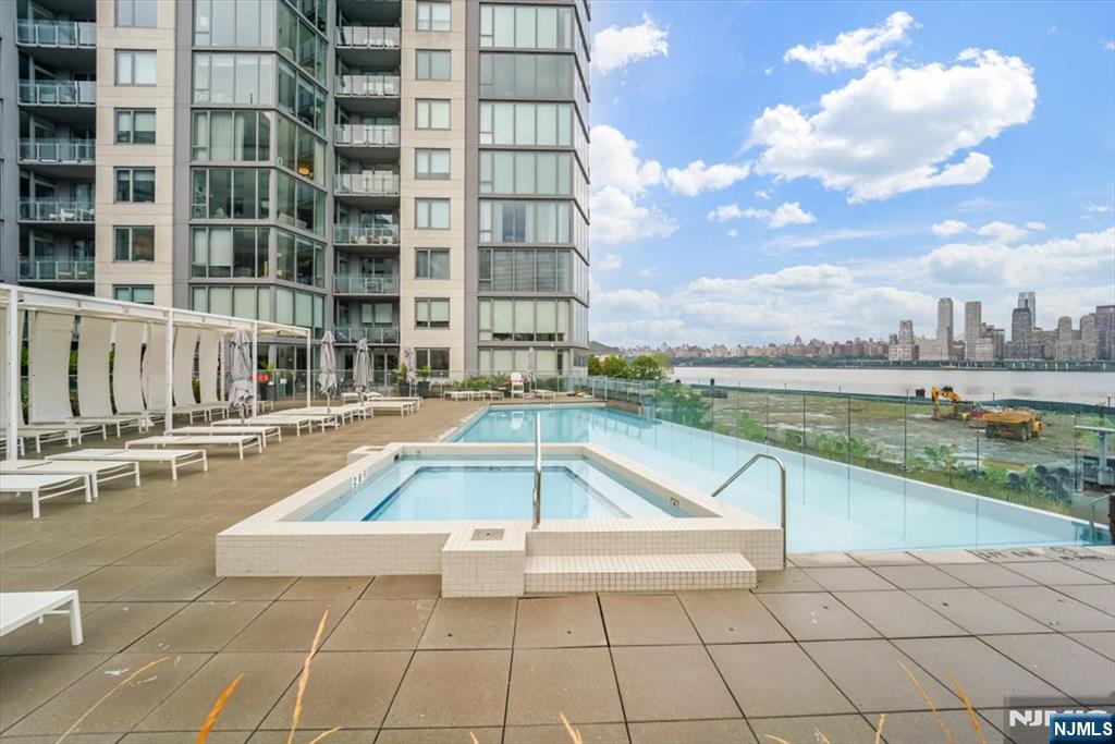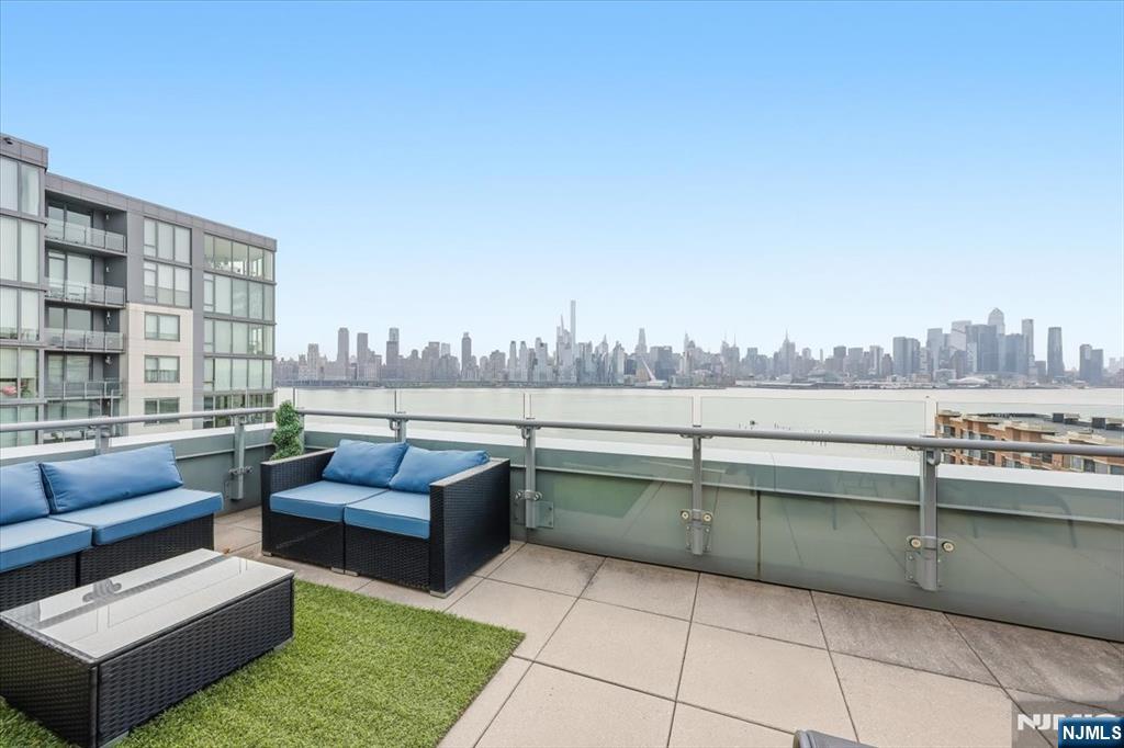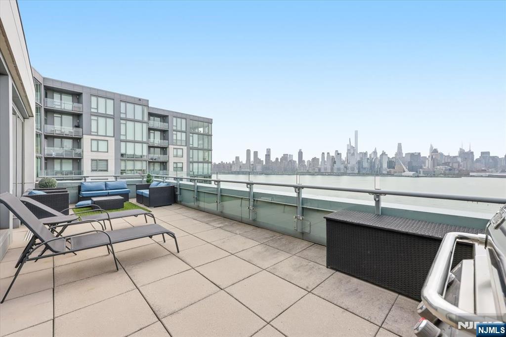 Welcome to luxury waterfront living at its finest in Nine on the Hudson. This exceptional 2-bedroom, 2-bathroom residence spans approximately 1,367 square feet and offers a rare combination of space, views, and outdoor living, highlighted by one of the largest private terraces in the entire building, perfectly positioned to capture completely unobstructed, panoramic views of the New York City skyline. Inside, the home features a seamless open-concept layout designed for both everyday living and elevated entertaining, with natural light pouring in through floor-to-ceiling windows that frame the skyline like a work of art. Residents enjoy access to over 40,000 square feet of world-class amenity space, including a two-story state-of-the-art fitness center, indoor golf simulator, children’s playroom, dog washing station, resident lounge, commercial-grade laundry facilities, bike storage, and a tranquil sauna. Outdoor amenities rival top-tier resorts, featuring a rooftop deck, infinity-edge pool overlooking NYC, grilling stations, and beautifully designed fire pit areas. Completing the home is a rare and highly valuable feature, deeded parking for two vehicles, offering unmatched convenience along the waterfront. Perfectly located along the Gold Coast with easy access to Manhattan, this residence delivers the ultimate blend of luxury, lifestyle, and location.