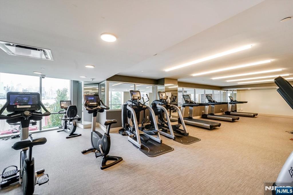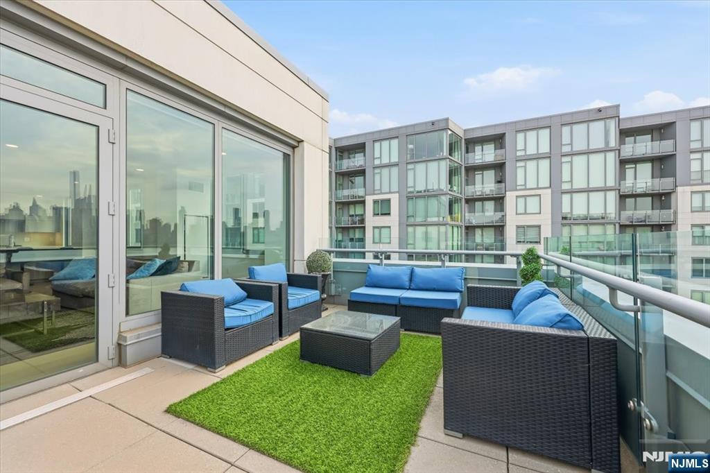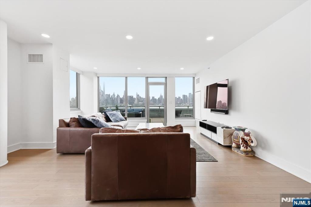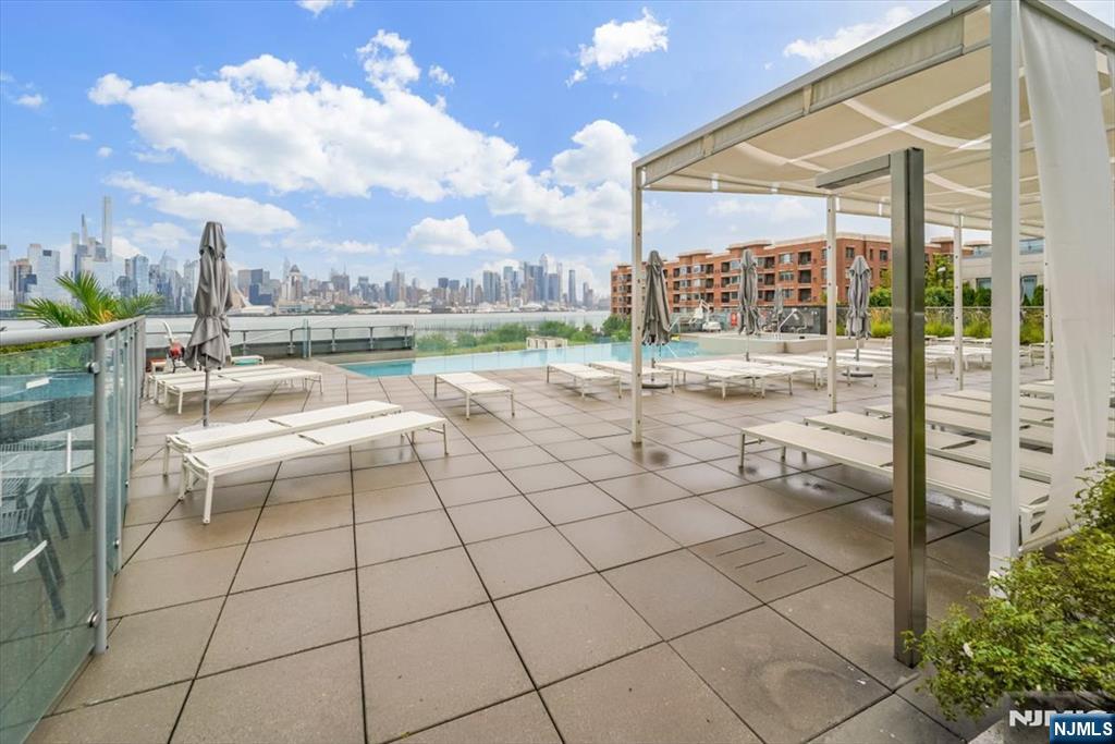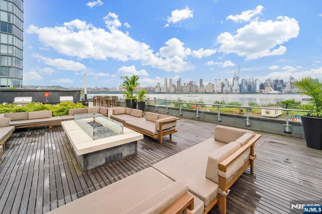 Welcome to luxury waterfront living at its finest in Nine on the Hudson. This exceptional 2-bedroom, 2-bathroom residence spans approximately 1,367 square feet and offers a rare combination of space, views, and outdoor living, highlighted by one of the largest private terraces in the entire building, perfectly positioned to capture completely unobstructed, panoramic views of the New York City skyline. Inside, the home features a seamless open-concept layout designed for both everyday living and elevated entertaining, with natural light pouring in through floor-to-ceiling windows that frame the skyline like a work of art. Residents enjoy access to over 40,000 square feet of world-class amenity space, including a two-story state-of-the-art fitness center, indoor golf simulator, children’s playroom, dog washing station, resident lounge, commercial-grade laundry facilities, bike storage, and a tranquil sauna. Outdoor amenities rival top-tier resorts, featuring a rooftop deck, infinity-edge pool overlooking NYC, grilling stations, and beautifully designed fire pit areas. Completing the home is a rare and highly valuable feature, deeded parking for two vehicles, offering unmatched convenience along the waterfront. Perfectly located along the Gold Coast with easy access to Manhattan, this residence delivers the ultimate blend of luxury, lifestyle, and location.