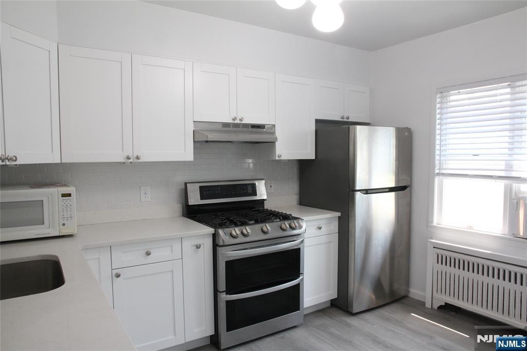 Totally renovated 2BR condo for rent. Entry foyer leads stairs to living room. Hardwood floors throughout and natural light drenched through 2 windows and 2 skylights. Renovated kitchen with new SS appliances. Renovated full bathroom. Good sized two bedrooms with hardwood floors & new window A/C units. Ample storages in unit and extra storage on the basement. W/D laundry room on the basement. Great location and easy access to middle school and high school, public transportation, shopping, restaurants, and all major highways.