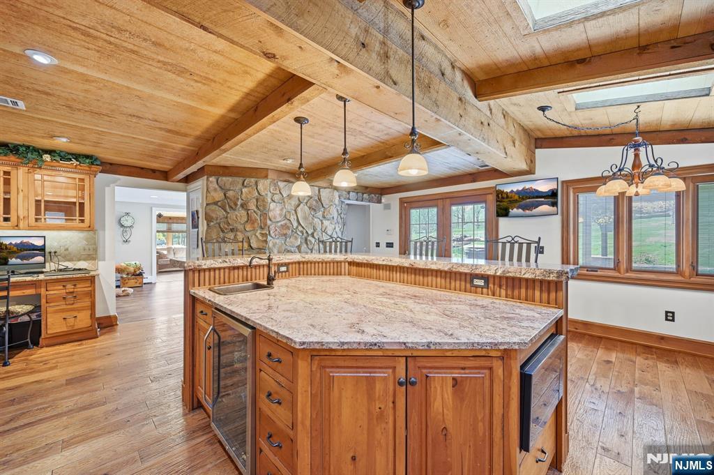 One-Of-A-Kind Craftsmanship With Everyday Function In This Thoughtfully Designed Property. The Custom Eat-In Kitchen Features A Breakfast Bar, Beamed Ceilings, Remote Skylights, Granite Countertops, Radiant Heat Beneath Penn Dutch Hardwood Floors, Commercial-Grade Dacor And KitchenAid Appliances, Bronze Cast Farmhouse Sink, Prep Sink, Electric Fireplace, And Built-In Desk. The Home Offers All-New Lighting, Beautifully Renovated 2025 Bathrooms, A New 500+ Ft Drilled Well With The Original Well That Can Be Used For Irrigation, New Water Softener And Well Tank, On-Demand 240 Gallon Hot Water Tank, Central Vac, Surround Sound, And Pocket Doors Leading To A Sunroom With Wood-Burning Stove And Walkout To The Patio With Outdoor Fireplace And Fire Pit. The Second Floor Includes 3 Bedrooms And 2 Full Baths, Including A Primary Suite With Private Full Bath And Walk-In Closet. Exterior Highlights Include A Large Paver Patio, Kohler Whole-House Generator, Detached 24'x22' Ice House With Upper/Lower Storage And 50-Amp Service, Plus A 35'x42' (1,470 Sq Ft) Oversized 3-Bay Garage With 200-Amp Panel, And Car Lift Ready. Additional Features Include 50-Amp RV Service And 2-Car Garage With 50-Amp Electric. Ideal For Car Enthusiasts, Hobbies, Or Entertaining Year-Round. Close To Route 23 And Just 1 Hour To NYC! So Much To See And Opportunities Like This Are Few And Far Between!