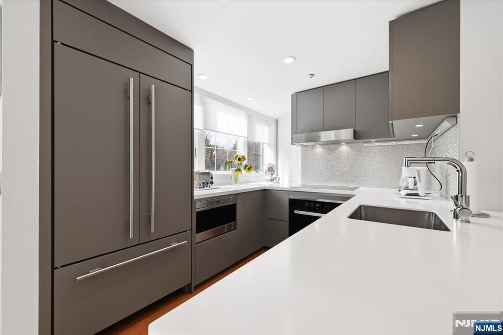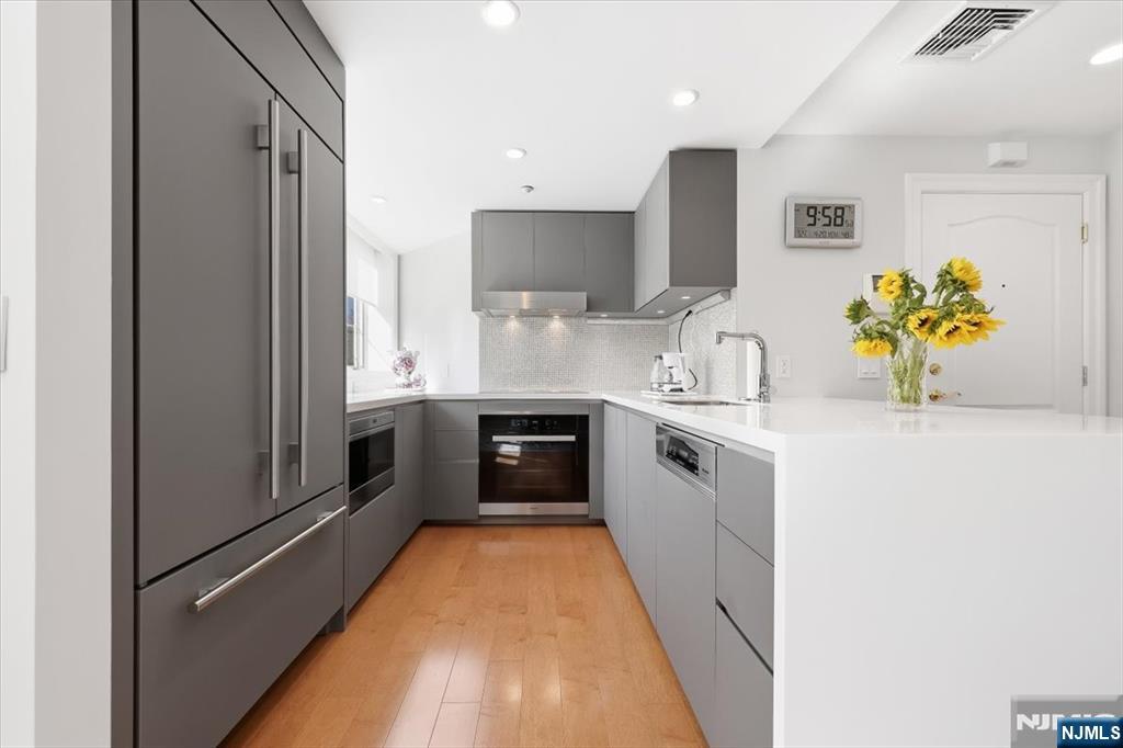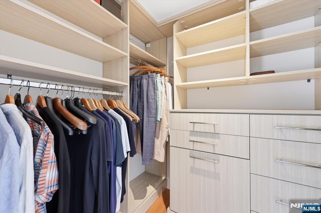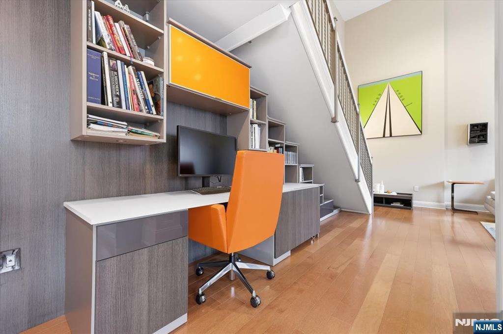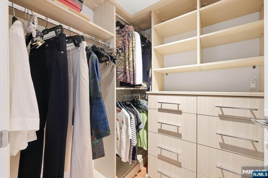 Opportunities like this simply do not come along at Walsh Hall  a one-of-a-kind loft-style two-story duplex that redefines luxury condominium living in one of Bergen County's most coveted private communities. Over 1600 sq ft of soaring double-height ceilings command immediate attention, flooded with natural light through oversized windows with motorized shades, a living canvas of elegance impossible to replicate in a standard unit. Every finish reflects an uncompromising vision. The custom Porcelanosa kitchen pairs seamlessly with a Wolf microwave drawer, Sub-Zero refrigerator, and Miele range and dishwasher, a true chef's suite. The California Closet library/office transforms everyday living into something inspired. Custom electric parquet floors run throughout, with Carrara marble concealed beneath, a detail that speaks volumes about how this residence was conceived. The duplex layout delivers privacy and separation of space rarely found within Walsh Hall's 92 residences. With only a handful of units of comparable footprint ever offered in the building's history, this is a true unicorn in the inventory. Beyond the front door, Rio Vista's world-class amenities including fitness center, saunas, outdoor pool, formal gardens, tennis and pickleball courts, set within 466 acres of rolling hills at the foot of the Ramapo Mountains, complete an unmatched lifestyle. Refined living at its most effortless.