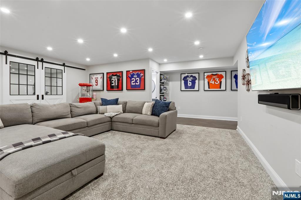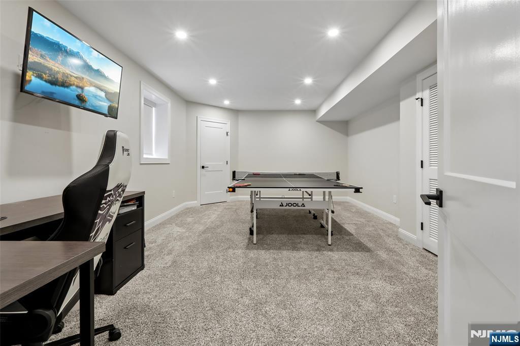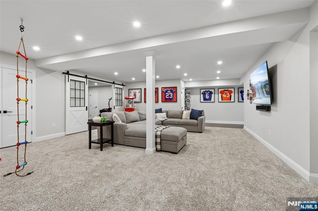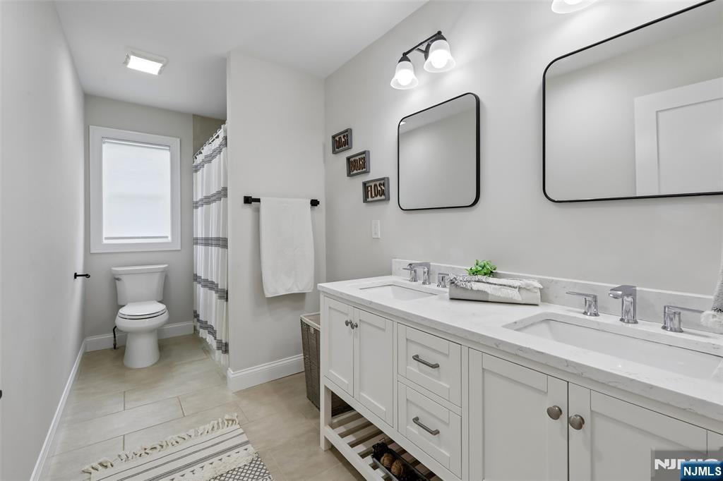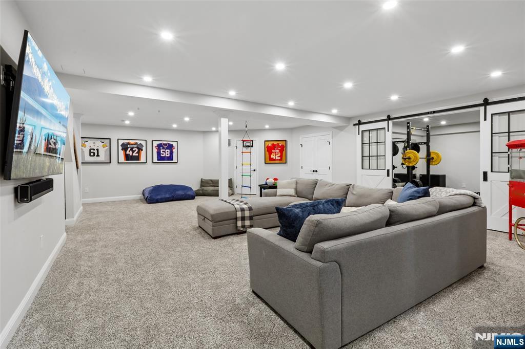 Custom-built on a new foundation in 2022, this refined Modern Farmhouse Colonial embodies contemporary luxury. Set on an expansive 0.9-acre lot near downtown Wyckoff, this thoughtfully designed residence offers approximately 4,000 sqft of living space plus an additional ~1,500 sqft in the expansive finished basement. The exterior beams with curb-appeal, showcasing Hardie board siding, shingle accents, a welcoming front porch, new landscaping, and a backyard bluestone porch and paver patios overlooking serene wooded surroundings. Inside, a grand two-story foyer opens to a sun-filled great room with a dramatic floor-to-ceiling stone fireplace and seamless flow into a gourmet chef’s kitchen with an oversized island, dining area, and pantry. Completing the main level are a living room with built-ins, a private office or playroom, a powder room, and a mudroom. Upstairs, the luxurious primary suite offers a spa-like bath with dual vanities, soaking tub, glass-enclosed shower, linen storage, and a generous walk-in closet. Three additional bedrooms include one with an ensuite bath, plus a full hall bath and second-floor laundry. The finished lower level features a gym, recreation area, and bonus space with an adjacent full bath. Additional highlights include high ceilings throughout, a two-car attached garage, new multi-zone HVAC, and radiant heated floors in the kitchen, great room, and living room - all just minutes from schools, shopping, and more.