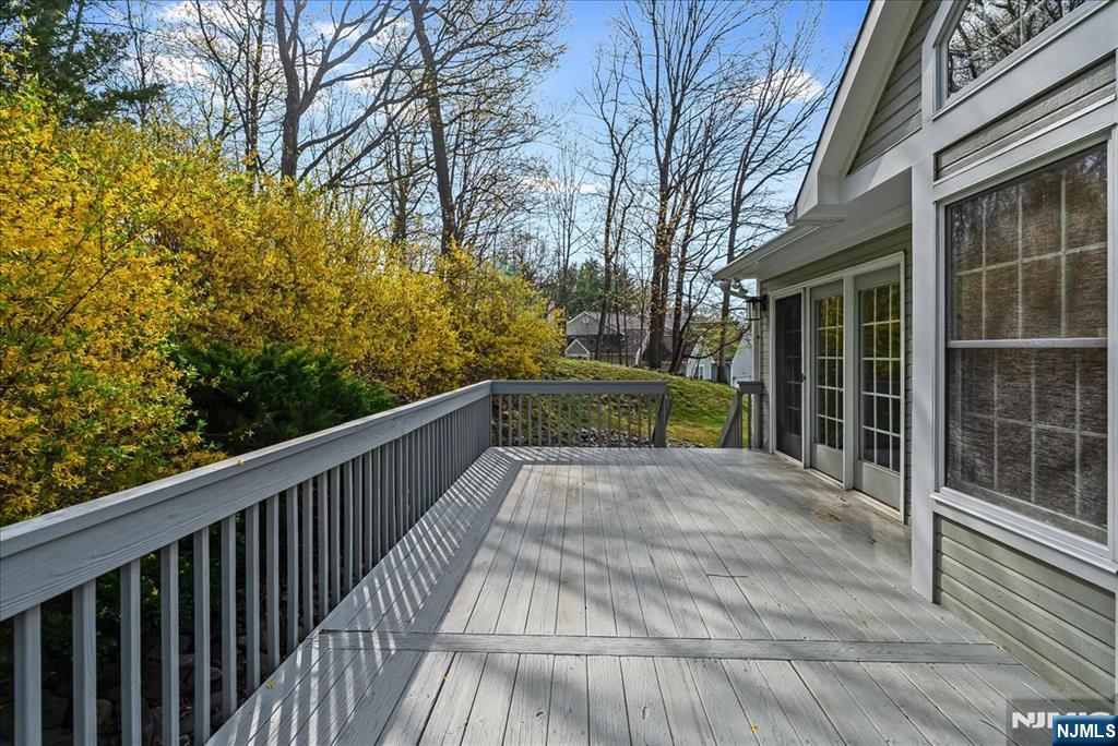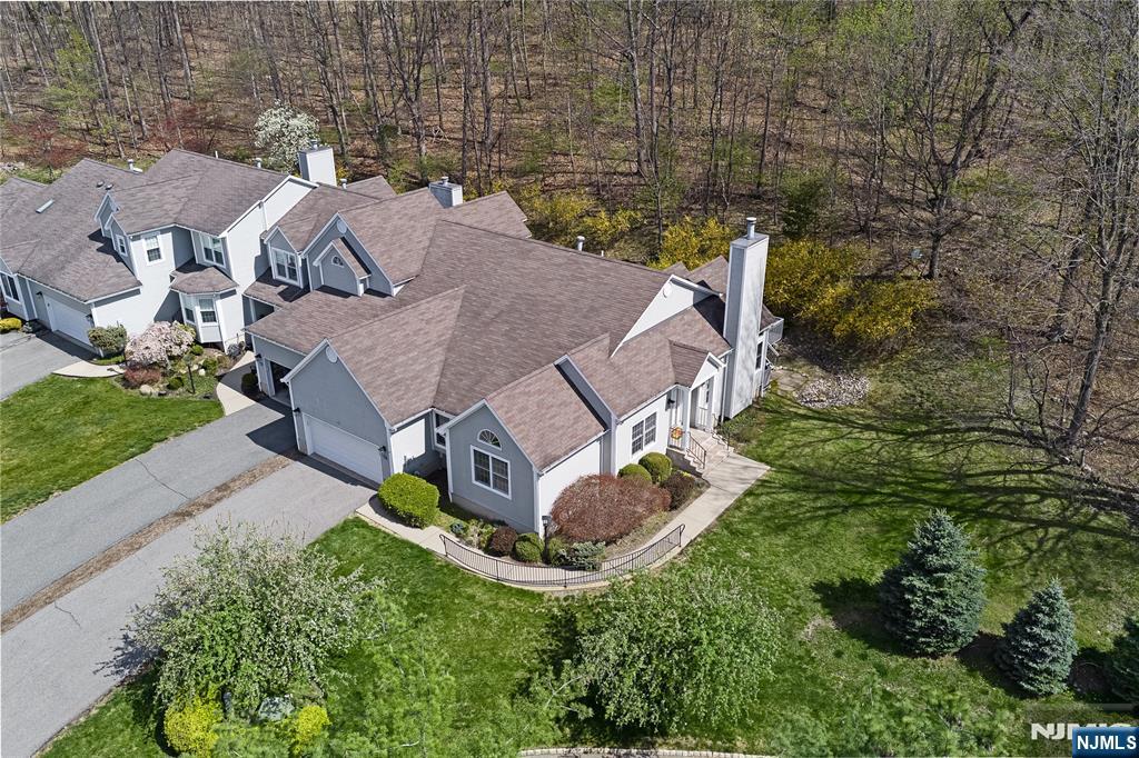 Private, peaceful, and perfectly positionedâ€â€this end-unit ranch townhome backs to preserved woods and offers effortless one-level living in the sought-after Woods at Waterview. Freshly painted and filled with natural light, this home features an open floor plan with oversized windows, cathedral ceilings, recessed lighting, and hardwood floors. The foyer flows into a spacious living room with a gas fireplace and serene wooded views. The living and dining area opens to a double-wide private deckâ€â€ideal for entertaining or relaxing in a tranquil setting. The split-bedroom layout offers privacy, with a primary suite featuring high ceilings, two walk-in closets, and an ensuite bath. Two additional bedrooms and a full bath are located on the opposite side. The home also offers a private office or flex space, along with a powder room, first-floor laundry, and direct access to a two-car garage. A full unfinished basement (over 2,000 sq ft) provides excellent potential for additional living space. Enjoy community amenities including pool, tennis, and pickleball. Conveniently located near top-rated schools, major highways, shopping, dining, and NJ Transit. A rare opportunity for easy, refined living in a premier location.