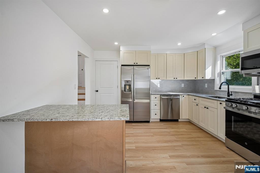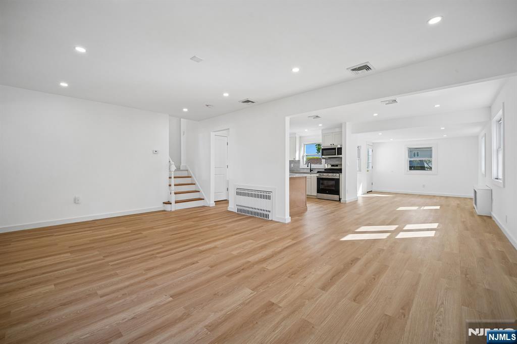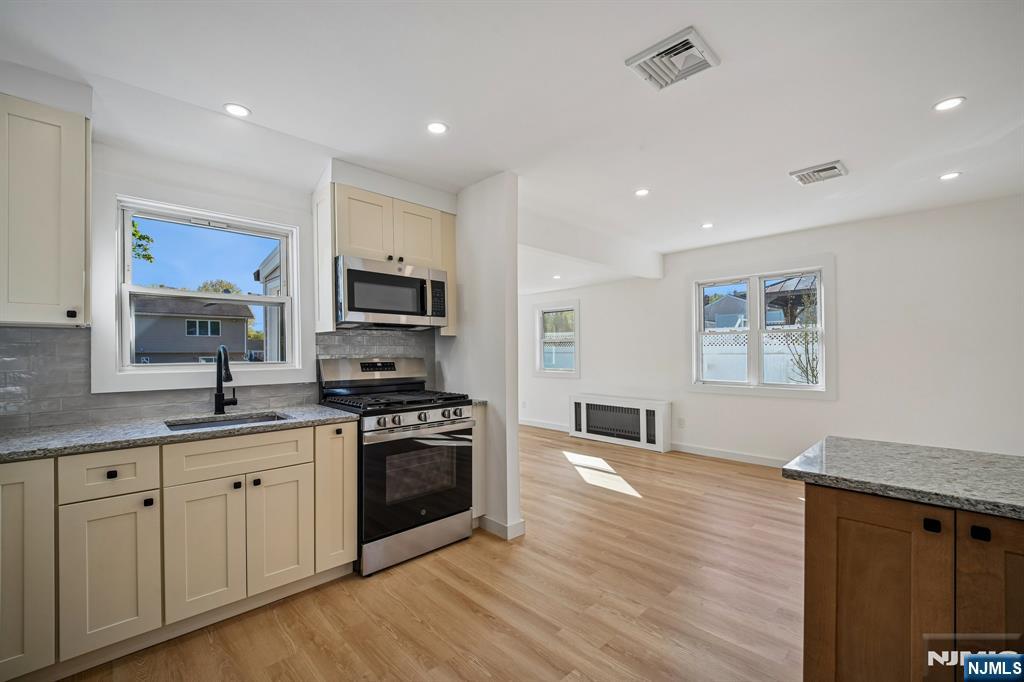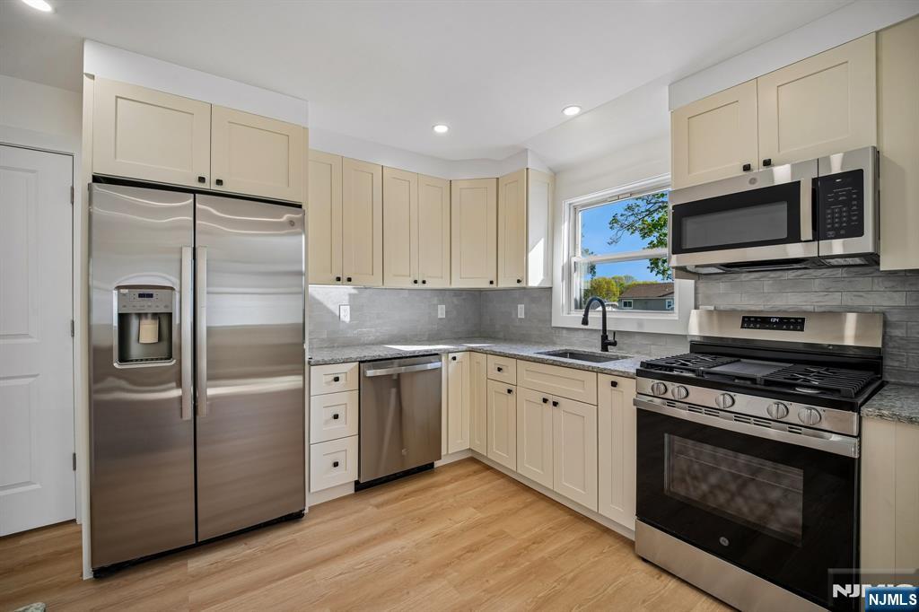 Welcome to 27 Mountainview Drive a beautifully updated and spacious split-level home in the highly desirable Albion section of Clifton. This move-in-ready home offers the perfect balance of modern updates, flexible living space, and sweeping NYC skyline views. Head into a bright and inviting open-concept layout with a seamless flow between the living room, dining area, and fully renovated kitchen-ideal for everyday living and easy entertaining. The kitchen features new modern cabinetry, clean finishes, and brand-new appliances, creating a stylish and highly functional space. The living room is enhanced by a new large picture window, filling the space with natural light. The home includes four generously sized bedrooms and two full bathrooms, including a private full bath on the lower level adjacent to the fourth bedroom, making it ideal for a guest suite or private home office space. A fully finished basement offers a spacious, oversized bonus area, perfect for a family room, recreation space, home gym, or additional work-from-home setup. Outside, a spacious yard with patio offers room to relax or entertain, while new stylish exterior finishes and updated entry details create a stunning, modern look. Thoughtfully updated throughout, this home offers true turnkey living with a fresh new modern feel. Conveniently located near NYC transportation, major highways, shopping, dining, and parks, it combines accessibility with the comfort of a well-established neighborhood.