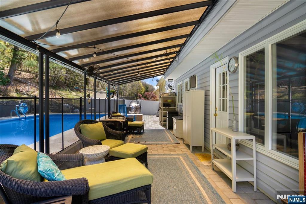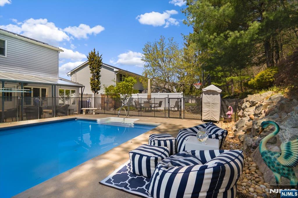 Your private backyard escape awaits in one of Wanaque's most sought-after neighborhoods. Nestled against the scenic backdrop of the Ramapo Mountains, this beautifully maintained and thoughtfully updated split-level home offers a rare combination of privacy, functionality, and exceptional outdoor living. The highlight of the property is a fully updated in-ground pool featuring a new liner, lines, and commercial-grade equipment, complemented by an expansive paver patio, landscape lighting, professionally landscaped grounds, and pre-plumbed for a pool heater creating the perfect setting for summer entertaining or peaceful relaxation. Inside, a welcoming foyer opens to a flexible multi-level layout enhanced by crown molding. The living and dining areas flow together seamlessly, accented by hardwood flooring throughout the main living areas. The eat-in kitchen offers newer appliances and ample space for customization. A spacious family room overlooks the backyard, providing additional living space. Major updates include a 2023 HVAC system, tankless water heater, solar panels, newer roof, air purification system, and radon mitigation. Additional features include a two-car garage with lofted storage and interior access. Conveniently located near local restaurants, schools, parks, and hiking trails, this move-in ready home offers comfort, space, and an outstanding backyard experience. Includes a 1-year home warranty.