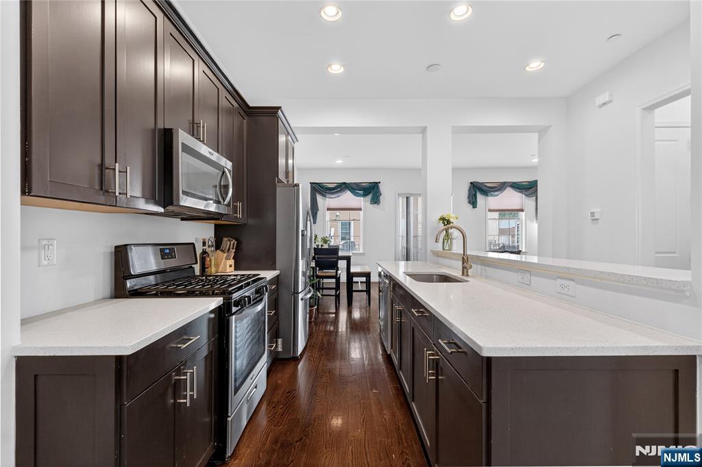 Call Charmy Morzaria at 609.619.2198 to see the home. STUNNING Colonial Style Luxury townhome located in FINEST & sought after Wright Place Community of Wood Ridge;ONLY 4 YEARS OLD has so much to offer;beautifully kept,tons of upgrades,has TAX ABATEMENT left! 30 mins from Manhattan,close to major turnpike/freeways,offers ease of commute to NYC,Hoboken,Jersey City,Secaucus;Wood Ridge has train station at Just 5 MINS stroll,also offers option of 2 buses going directly into Manhattan that runs every 10-15 mins.Beautifully manicured green lush lawn, colorfully arched flower walkway welcomes you in.This home includes front & rear entrance w/2car garage, 2 car driveway.1st floor has 9ft high ceilings,tall windows,2 closets,good sized 4th bedroom with a closet & full bath.Dramatically arched staircase will brings you to 2nd floor;open concept layout perfect for entertaining,10ft high ceilings,tall windows,massive dining space,modern Kitchen w/breakfast bar & Pantry, SS appliances,Quartz countertops, large living room w/outdoor deck offering.3rd floor offers primary bed suite w/full bath,his&her closets,2 add'l bedrooms,full bath & laundry room;2 Zone heating/cooling,hardwood floors throughout.Wood-Ridge has so much to offer;good schools,restaurants,coffee shop,liquor shop,pet grooming,phenix salon,sports field,parks & just steps away from TOP RATED Catherine Doyle elementary schools.A perfect home for buyers & a great investment option with high rent potential.