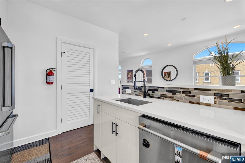 Modern duplex unit with parking and skyline rooftop in the vibrant section of The Heights in Jersey City, this sun-drenched duplex residence offers a perfect blend of space, light, and modern comfort. Oversized windows fill the home with natural light, creating an inviting and airy atmosphere throughout. The main level features an elegant open-concept living and dining area seamlessly connected to a stylish kitchen with a sleek quartz breakfast bar, ideal for entertaining or casual dining. Rich hardwood floors flow throughout the home, complemented by central HVAC with a Nest thermostat for effortless climate control. A full bathroom completes this level. The lower level offers two spacious bedrooms, a second full bathroom, and a convenient laundry and storage area, providing both comfort and practicality. Located just steps from Central Avenue and Journal Square, residents enjoy easy access to a dynamic mix of boutique shops, cafes, restaurants, and convenient transportation options to Manhattan. The building enhances the lifestyle experience with premium amenities, including a fully equipped fitness center and an impressive rooftop terrace showcasing breathtaking panoramic views of New York City Skyline.