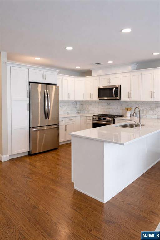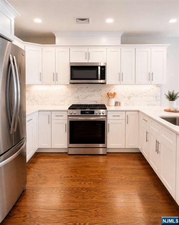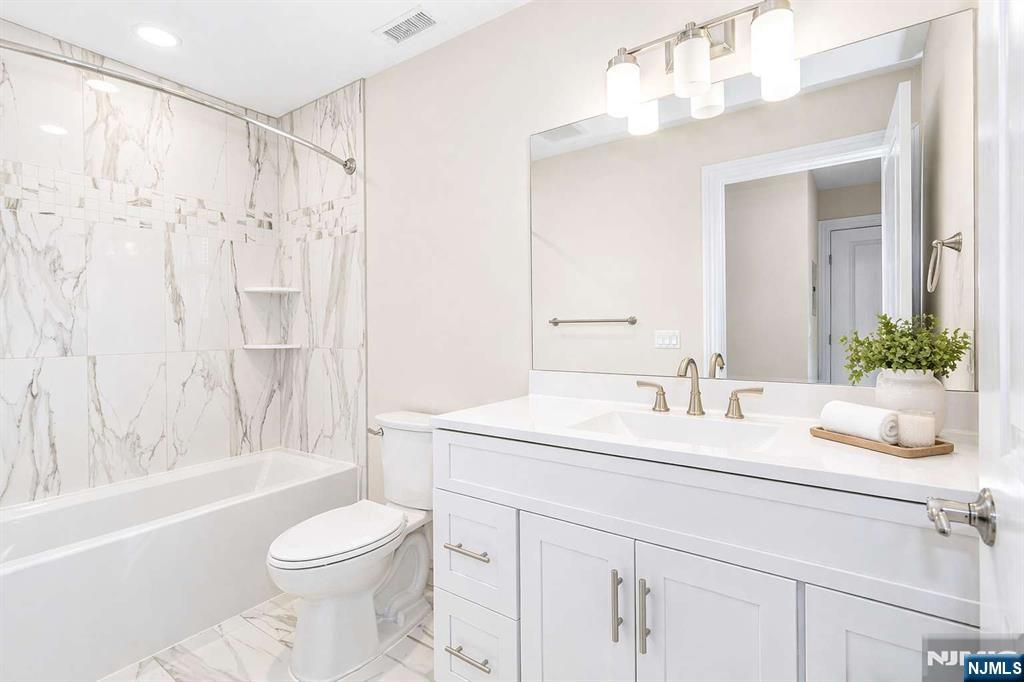 No monthly HOA fee, newer construction, private fenced yard larger than most townhomes offer, and a walkable train commute to NYC, an extremely rare combination. Beautifully maintained and move in ready, this 4 bedroom, 3.5 bath home offers approximately 2,300 sq ft of modern living space, garage parking, a two car driveway, and additional street parking. The main level features an open concept layout with a chef’s kitchen, brand new quartz countertops, stainless steel appliances, dining area, spacious living room, and half bath. Upstairs offers three bedrooms and two full baths, including a primary suite with walk in closet and en suite bath. Ground level includes a fourth bedroom, full bath, and garage access. Located on a quiet non through street just steps from shops, restaurants, parks, and everyday conveniences, with an easy walk to the train for commuting to NYC. Situated in highly rated Waldwick, minutes to Ridgewood, Whole Foods, premier shopping, dining, and major highways. Rare opportunity to own a low maintenance newer home with privacy, outdoor space, and commuter convenience in one of Bergen County’s most desirable locations.