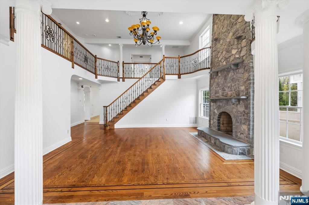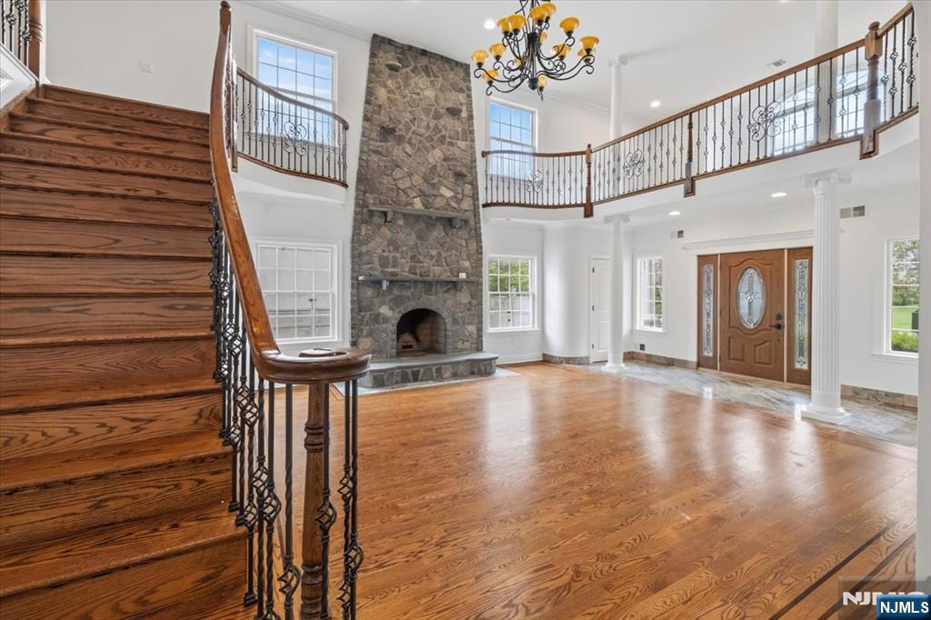 VERY SPACIOUS CUSTOM BUILT 4 BEDROOM 3 AND 1/2 BATH COLONIAL WITH GRAND ENTRANCE. AS YOU ENTER THE TWO STORY OPEN LIVING ROOM WITH HARDWOOD FLOORS THROUGHOUT YOU WILL SEE A MAGNIFICENT FLOOR TO CEILING HAND CRAFTED FIREPLACE SURROUNDED BY A BEAUTIFUL BALCONY OVERLOOKING BELOW. THE 1ST FLOOR HAS A LARGE FORMAL DINING RM, A HUGE CUSTOM EAT IN KITCHEN WITH AN ENORMOUS ISLAND FOR HOME COOKED MEALS AND ENTERTAINING. THE KITCHEN OVERLOOKS THE SUNKEN FAMILY ROOM WHICH HAS A 2ND FIREPLACE AND MANY WINDOWS GIVING YOU AN UNOBSTRUCTED VIEW OF THE SPACIOUS BACKYARD. MAKE YOUR WAY UP TO THE SECOND FLOOR VIA THE SWEEPING GRAND STAIRCASE WHERE YOU WILL FIND A LUXURIOUS MASTER SUITE WITH VAULTED CEILINGS, A HUGE WALK IN CLOSET, AND A PRIVATE SPA-LIKE MASTER BATH. ROUNDING OUT THE SECOND FLOOR ARE 3 ADDITIONAL LARGE BEDROOMS, 2 FULL BATHS, A ROOM THAT IS PERFECT FOR AN OFFICE/NURSERY/OR READING ROOM. LASTLY ON THE SECOND FLOOR THERE IS A LARGE OPEN SPACE THAT CAN BE USED FOR WHATEVER YOUR IMAGINATION CAN THINK OF. THERE IS A HUGE FULL UNFINISHED BASEMENT WITH 8' CEILINGS WITH TWO STAIRCASES. ONE LEADING TO THE KITCHEN AND THE OTHER TO TH OVERSIZED 2 CAR GARAGE. DON'T WAIT! THIS WON'T LAST! CLOSE TO SCHOOLS, TRANSPORTATION, SHOPPING, AND HOUSES OF WORSHIP.