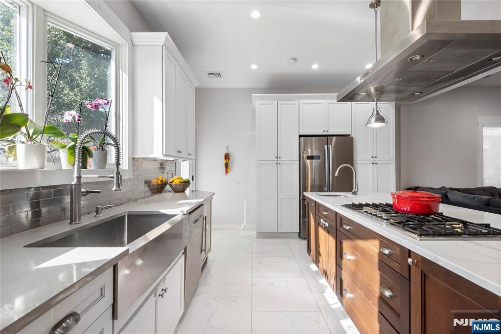 This is a true Unicorn Property! An exceptional two-family residence (currently used as a one family) in one of North Bergen’s most coveted pockets, just one block from North Hudson Park and moments off Boulevard East. The owner’s triplex unit has been meticulously designed for both elevated living and effortless entertaining. The main level features approximately 1,200 square feet of open-concept living and dining space anchored by a chef-caliber kitchen, with direct access to an expansive backyardâ€â€ideal for indoor-outdoor flow. This level also includes a full bath and a separate mudroom entrance, offering practical day-to-day functionality. The second floor is thoughtfully laid out with three bedrooms and two full baths, including a junior suite with its own ensuite. A wet bar services a stunning ~600-square-foot private rear deck, delivering sweeping, unobstructed views of the Manhattan skylineâ€â€an entertainer’s dream. The top floor is dedicated entirely to a luxurious primary suite spanning over 800 square feet. This retreat offers a generous sitting area, three custom walk-in closets, and a spa-quality bath. A private terrace completes the space, again capturing direct, panoramic NYC views. The ground-level second unitâ€â€configured as a two-bedroom, two-bath with its own private entrance. he property also offers the rare convenience of four-car parking and encompasses approximately 5,000 square feet of total living space. Seller is a licensed real estate broker.
