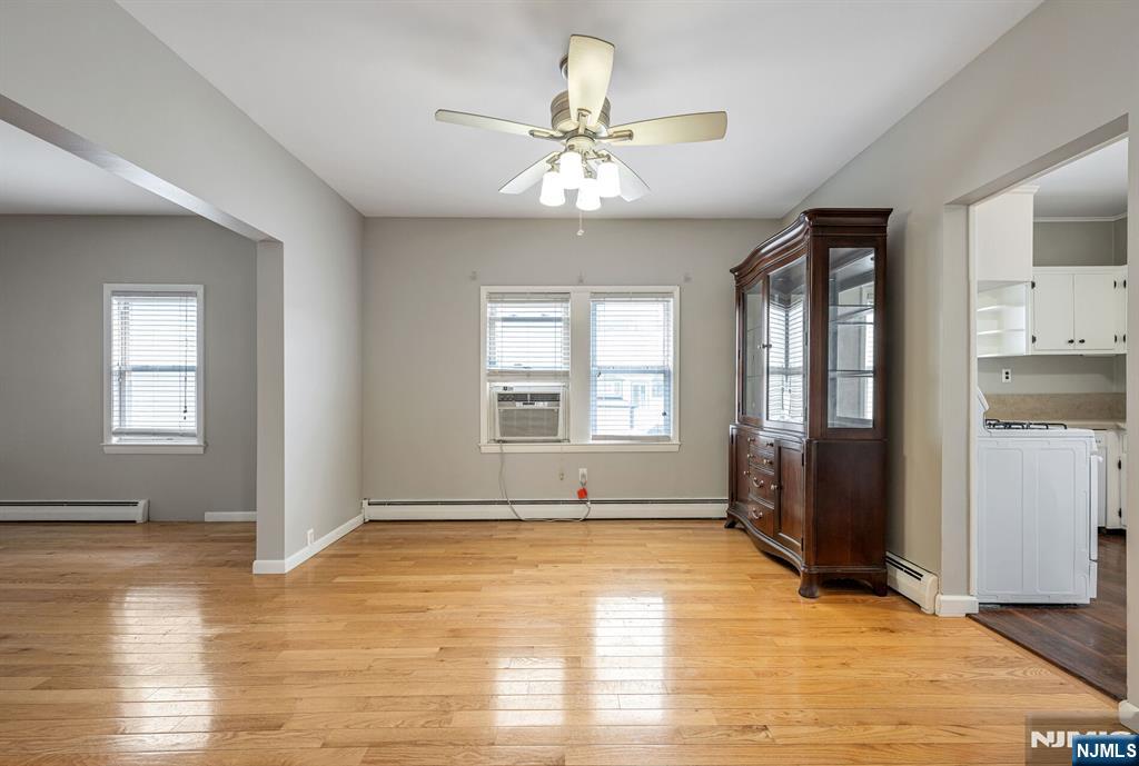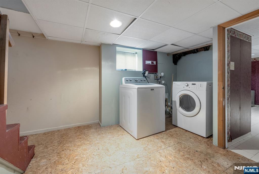 Spacious and versatile two-family home in highly desirable Saddle Brook, offering an excellent opportunity for both owner-occupants and investors. The first-floor unit welcomes you with an enclosed front porch, perfect for relaxing, and opens to a generous living room, formal dining room, and an eat-in kitchen ideal for everyday living and entertaining. This unit also features two bedrooms, an updated full bath, and full access to a finished basement complete with laundry, utilities, storage, and multiple bonus rooms offering endless potential for home office, recreation, or extended living space. The second-floor unit offers a bright and functional layout with a large kitchen featuring a convenient laundry hookup, a comfortable living room, two bedrooms, and an updated full bath. Beautiful wood flooring runs throughout much of the home, adding warmth and character. Outside, enjoy a fenced rear yard perfect for outdoor gatherings, pets, or play, along with a detached one-car garage for added convenience. Ideally located near major highways, shopping, dining, and NYC transportation, this property delivers both comfort and accessibility. A rare opportunity to own a well-maintained multi-family home in a prime Bergen County location.