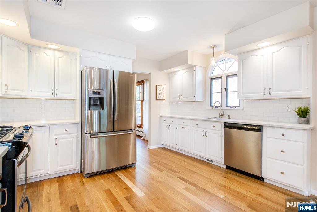 Welcome to this spacious (2500+sqft) & inviting center hall Colonial in the heart of Rutherford, NJ. A welcoming entry foyer sets the tone for this beautifully maintained home, featuring a formal LR with a cozy gas FP & an elegant formal DRâ€â€perfect for entertaining. The modern eat-in kitchen is designed to impress, showcasing sleek quartz countertops, classic subway tile backsplash, & SS appliances. The 1st FL also offers a generously sized BR with a walk-in closet, a newer full bath, & a versatile denâ€â€ideal as a home office, guest room, or potential additional BR. Upstairs, you’ll find 3 generously sized BR's, all with ample closet space, along with a 4th room being used for storage that can easily be converted into an additional BR or flex space to suit your needs. Throughout the home, brand new HW floors add warmth & continuity. Comfort is key with Central AC on the 1st Fl & wall units on the 2nd Fl. The large, partially fin.basement spans the full footprint of the home, offering endless possibilities for recreation, storage, or add'l living space. Outside, a long driveway leads to a 2-car det. garage complete with an impressive loftâ€â€perfect for a home office, game room, studio, or creative retreat. Perfectly situated, this home provides easy access to NYC transportation & is just moments from Rutherford’s vibrant downtown, known for its charming shops & acclaimed restaurants. A wonderful opportunity to enjoy space, style & convenience all in 1 location.
