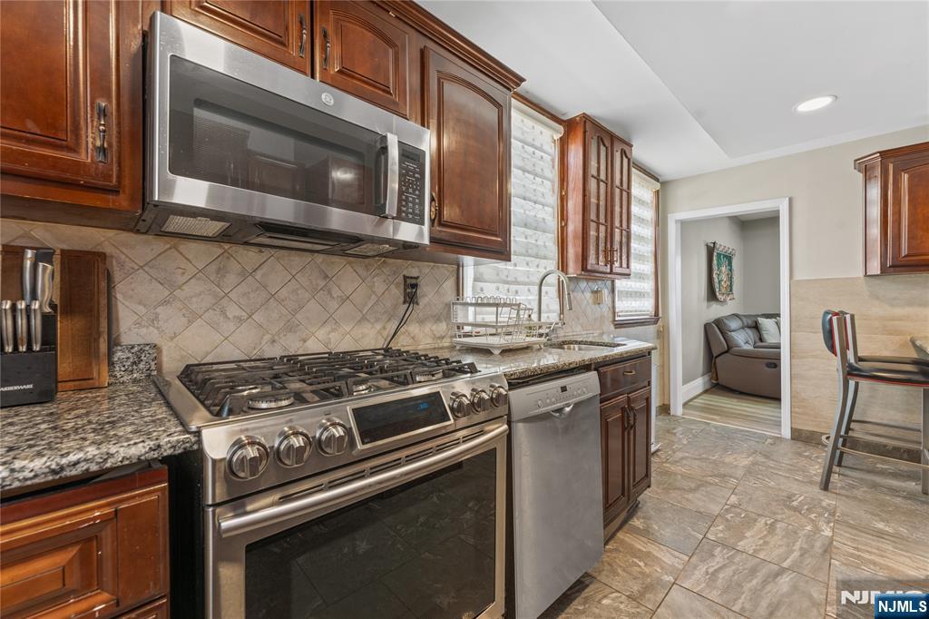 This spacious 5-bedroom home offers a versatile layout with a total of 4 baths, perfect for comfortable living and entertaining. The first floor welcomes you with a bright entry foyer leading to a generous living room, formal dining room, and a cozy family room. The kitchen is conveniently located, making everyday living easy.Upstairs, the second level features a primary bedroom with a walk-in closet, along with two additional bedrooms and a full bath. The third floor adds even more flexibility with two extra rooms ideal for guests, a home office, or creative space.The finished basement provides an additional family room, offering even more room to relax or entertain. Outside, enjoy a spacious backyard perfect for gatherings, plus a driveway that accommodates up to four cars.Conveniently located near schools, major highways, and NYC transportation, this home combines space, functionality, and accessibility.