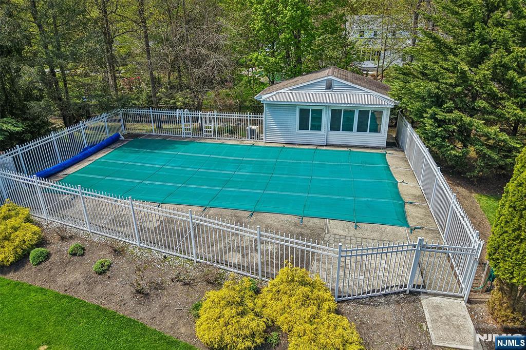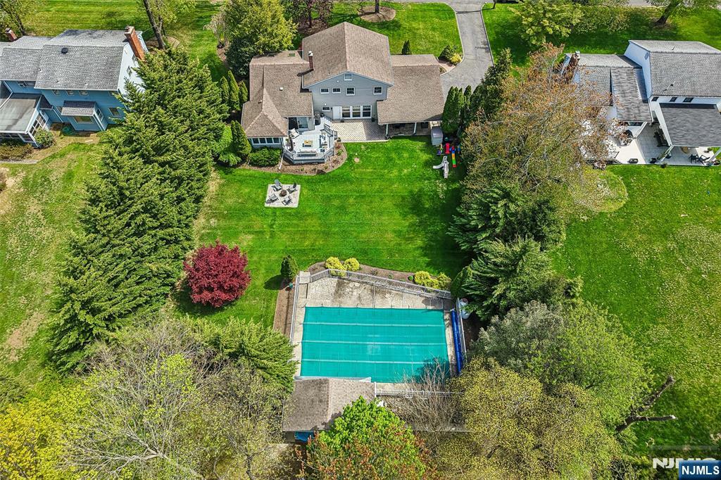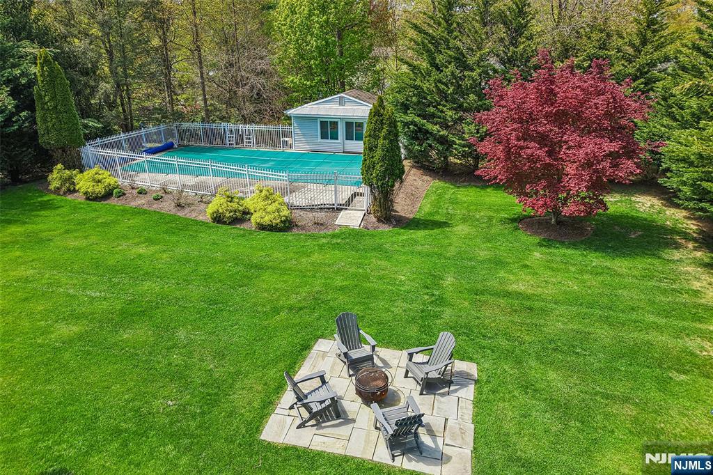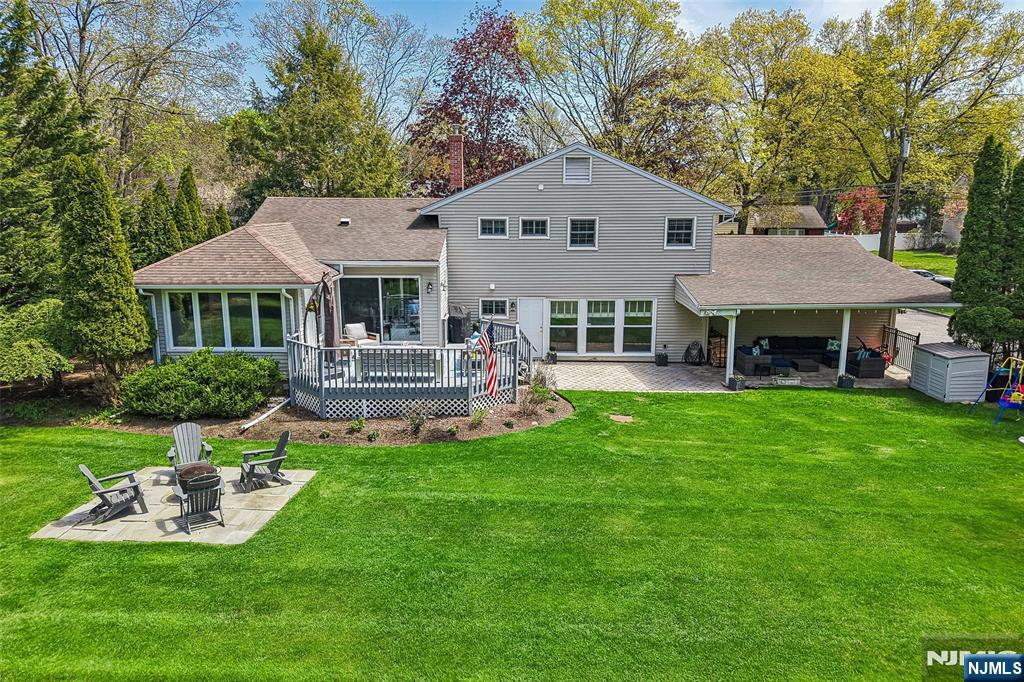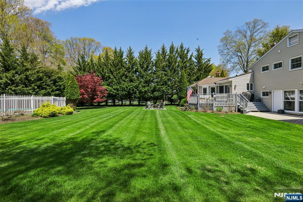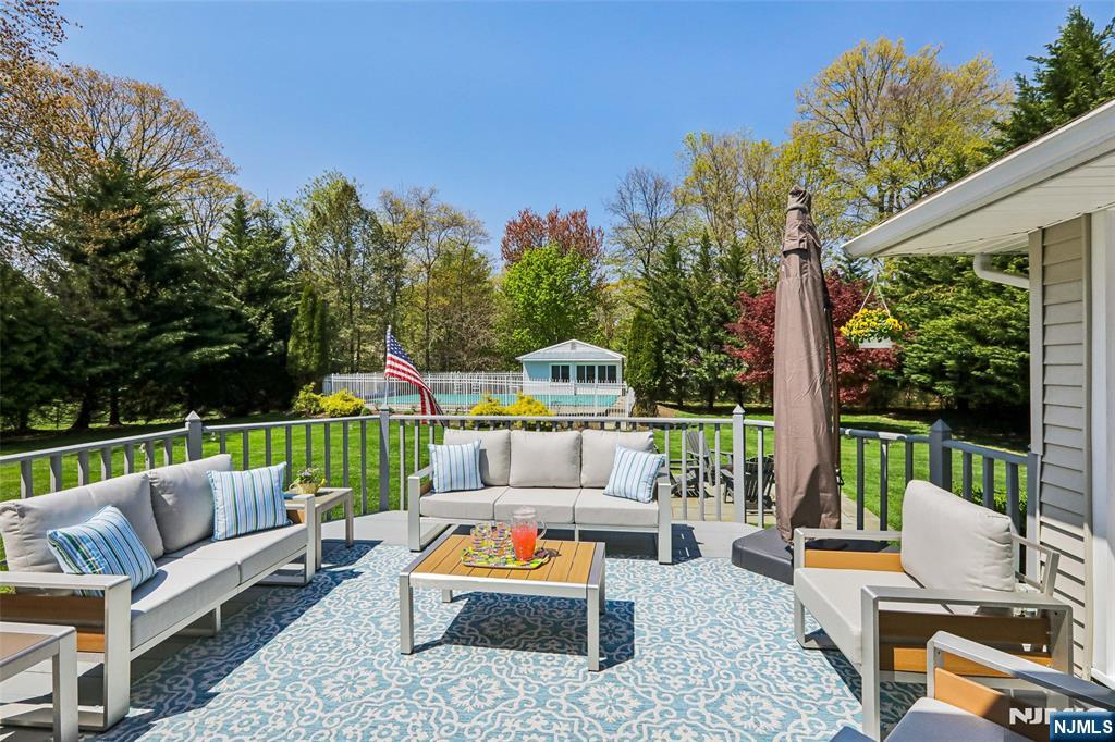 Welcome to your private suburban oasis in Wyckoff’s Meer Estates! Designed for both entertaining and everyday luxury, this 4-bedroom, 2.5-bath residence is positioned on a lush, level half-acre with a fenced backyard boasting a heated pool, a chic updated cabana, an expansive deck, and a covered patio. The welcoming foyer opens to a sun-drenched family room with walls of windows and a wide staircase ascending to a natural light-filled main level, beginning with a vaulted ceiling living room with skylights and an oversized bay window. The formal dining room flows into a sun-filled solarium, while the modern eat-in kitchen is equipped with granite counters, peninsula seating, and sliding glass doors to the deck. The upper level features a primary ensuite and two additional freshly painted bedrooms, complemented by an updated bath. Added value abounds with a ground floor bedroom off the family room, newly finished basement gym (2023), reverse osmosis water filtration, and recent pool upgrades including a 2024 filter and 2022 cover. Set in a prime location near top-tier Wyckoff schools and just blocks from the NYC-bound bus, this home is the ultimate suburban retreat.