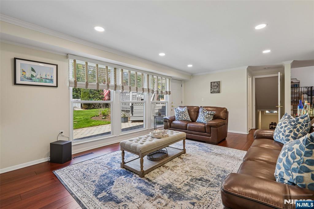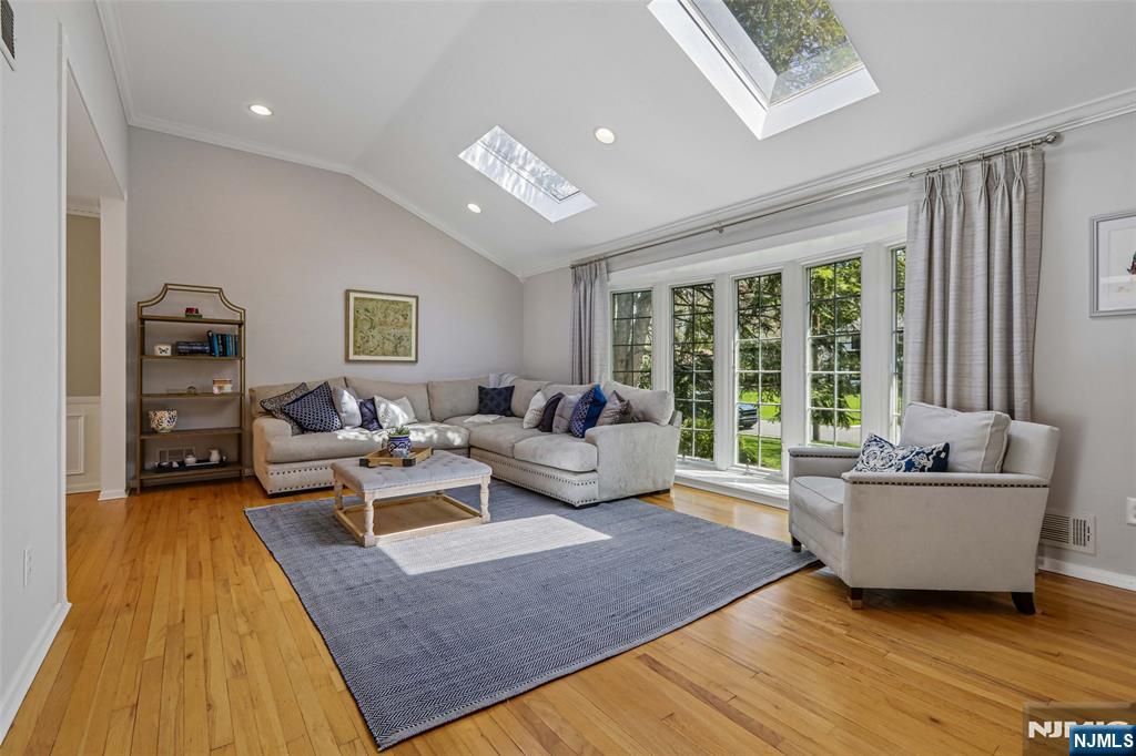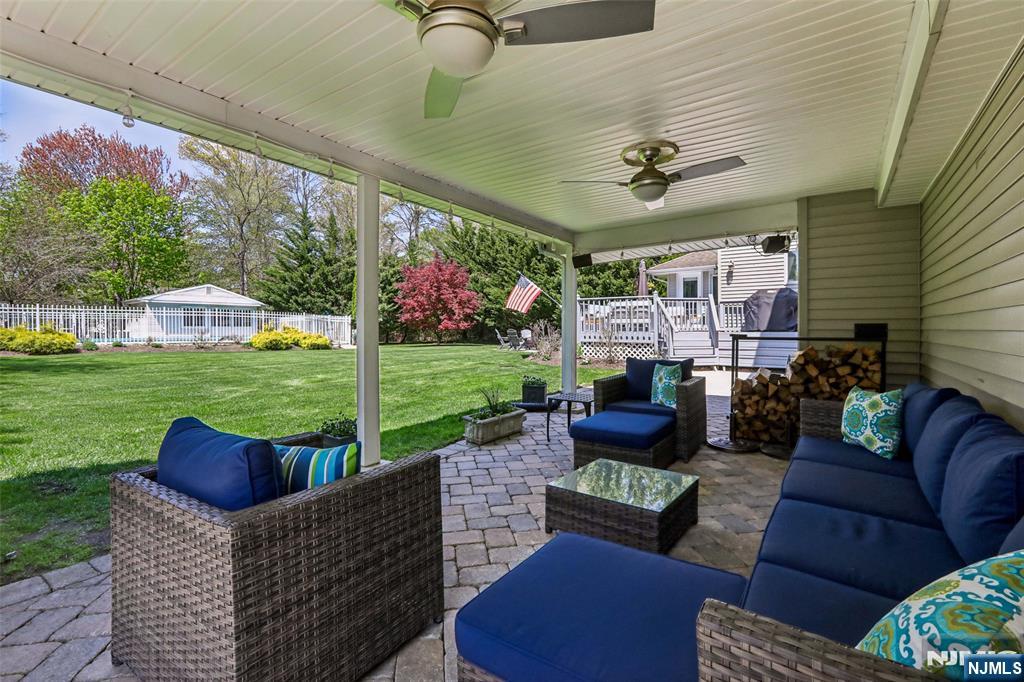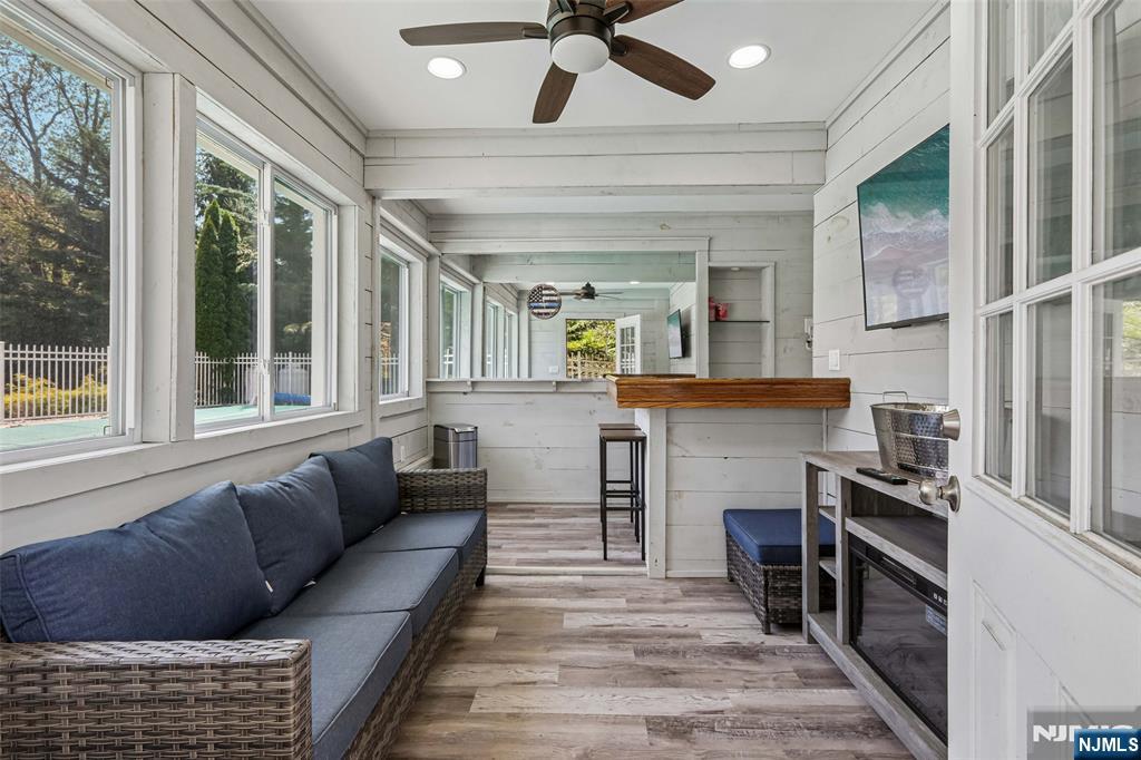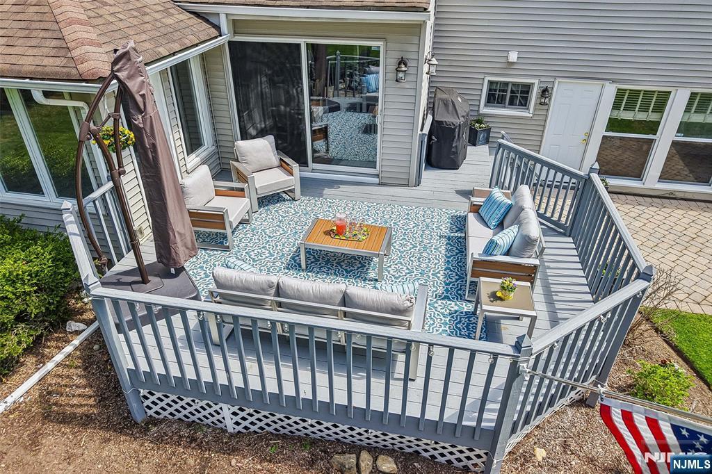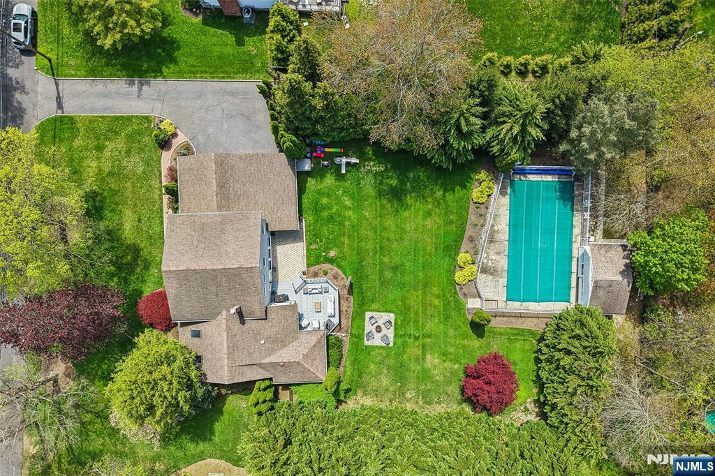 Welcome to your private suburban oasis in Wyckoff’s Meer Estates! Designed for both entertaining and everyday luxury, this 4-bedroom, 2.5-bath residence is positioned on a lush, level half-acre with a fenced backyard boasting a heated pool, a chic updated cabana, an expansive deck, and a covered patio. The welcoming foyer opens to a sun-drenched family room with walls of windows and a wide staircase ascending to a natural light-filled main level, beginning with a vaulted ceiling living room with skylights and an oversized bay window. The formal dining room flows into a sun-filled solarium, while the modern eat-in kitchen is equipped with granite counters, peninsula seating, and sliding glass doors to the deck. The upper level features a primary ensuite and two additional freshly painted bedrooms, complemented by an updated bath. Added value abounds with a ground floor bedroom off the family room, newly finished basement gym (2023), reverse osmosis water filtration, and recent pool upgrades including a 2024 filter and 2022 cover. Set in a prime location near top-tier Wyckoff schools and just blocks from the NYC-bound bus, this home is the ultimate suburban retreat.