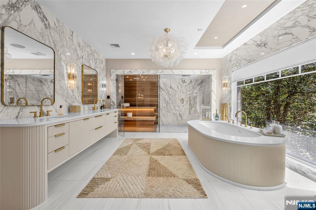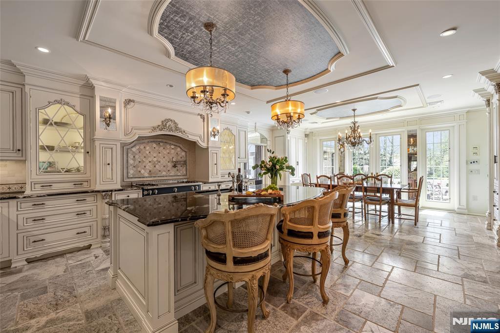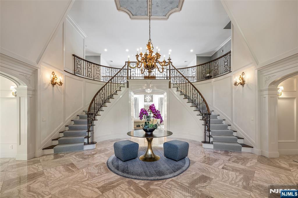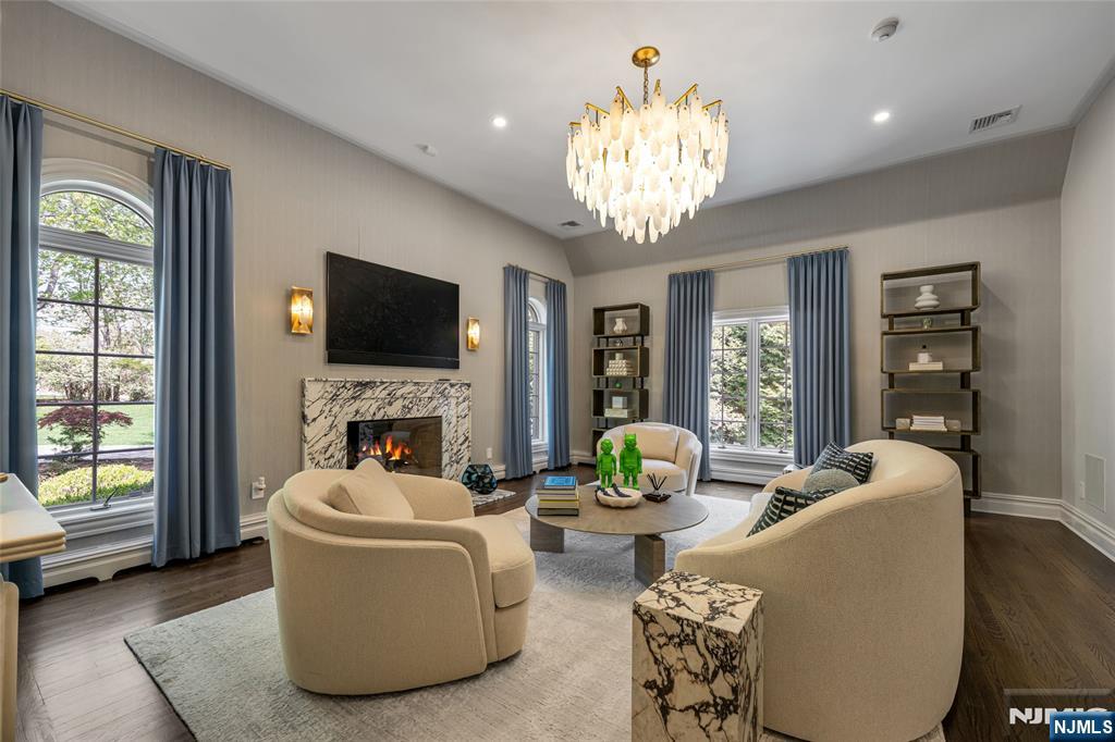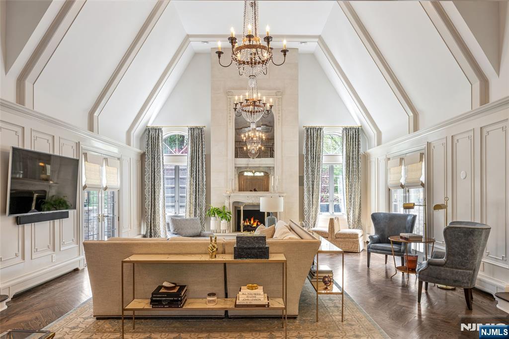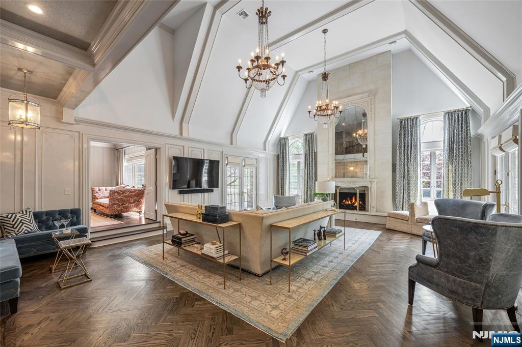 Masterfully designed, this sprawling English Country Manor seamlessly blends modern elegance, timeless architecture, and exceptional custom millwork. Set on 2 serene acres, this 9,200 SF estate, complemented by a 2,400 SF lower level, showcases exquisite interiors by renowned designer Jennifer McGee and offers the ultimate Saddle River retreat. A grand foyer with Grecian marble floors and a sweeping bridal staircase introduces an expansive layout designed for refined entertaining. The dramatic 2-story great room, anchored by a sophisticated wet bar and double French doors, flows effortlessly into a gourmet chef’s kitchen with custom cabinetry, oversized island, La Cornue Chateau 120 range, and radiant heated floors. The main level is further enhanced by a banquet-sized dining room, private office, and living/billiard room with stunning traditional details. The primary suite, immaculately renovated in 2024, is a true sanctuary boasting a fireplace, sitting room, oversized dressing room, and spa-like bathroom that is a masterwork of design, featuring a sauna, freestanding jacuzzi and radiant heat. Upstairs, 5 spacious bedrooms and a full laundry room provide comfort and convenience. Expansive lower level includes a temp-controlled wine cellar, gym, rec room, media room, and access to the heated 6-car garage. Outdoors, resort-style grounds showcase tranquil pond views, manicured gardens, a heated Gunite pool, bluestone patios and fire pit. Unmatched prestige & privacy await!