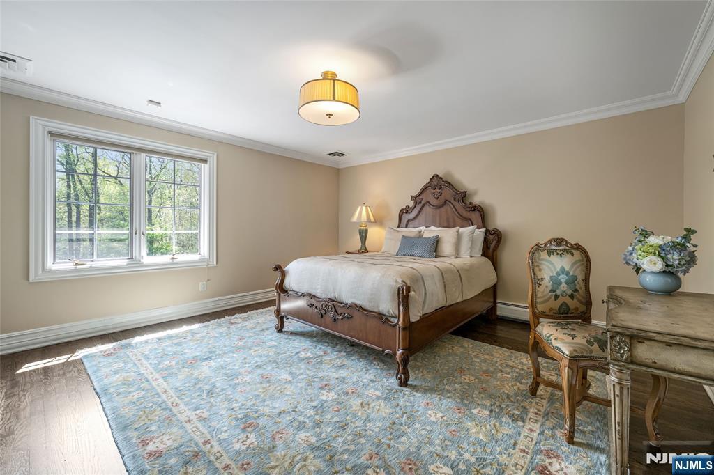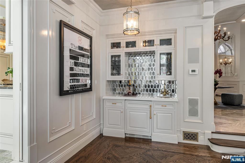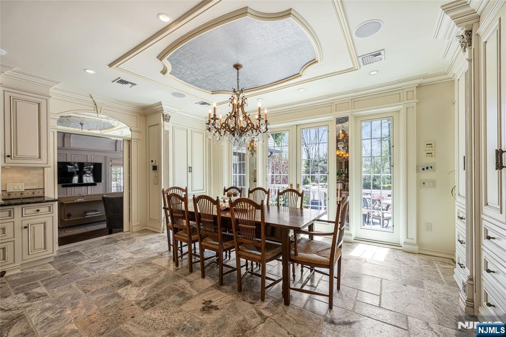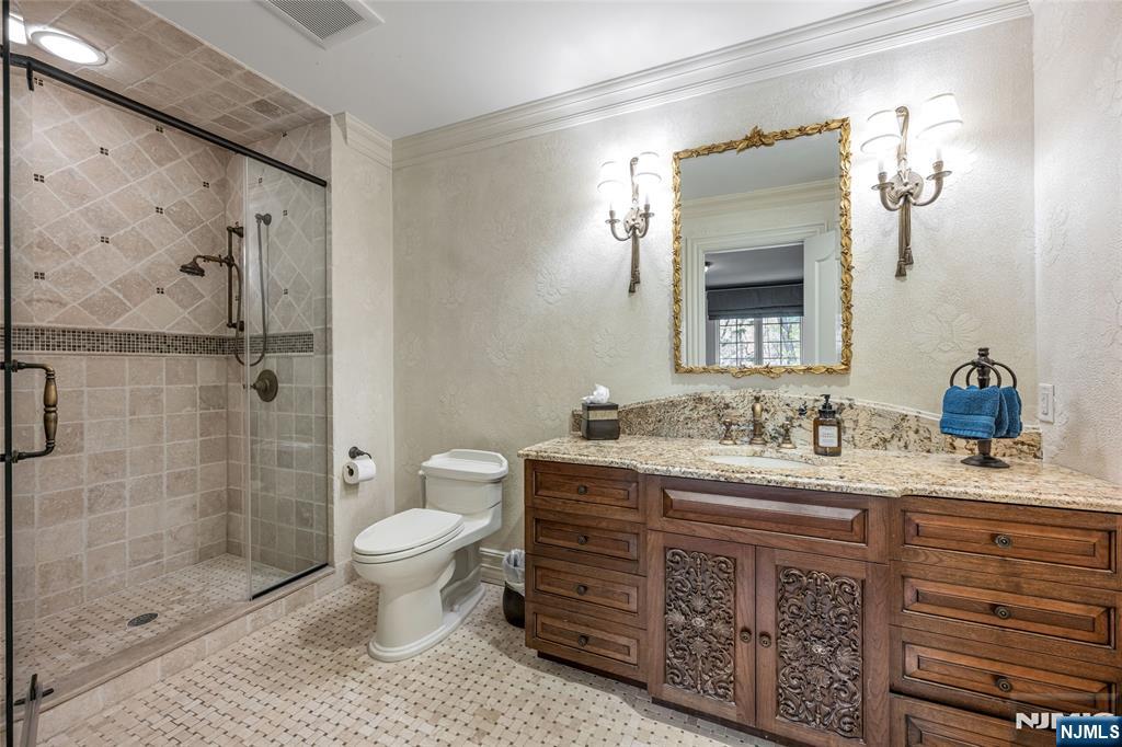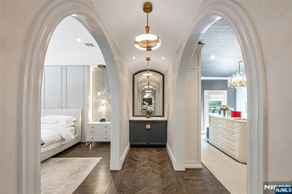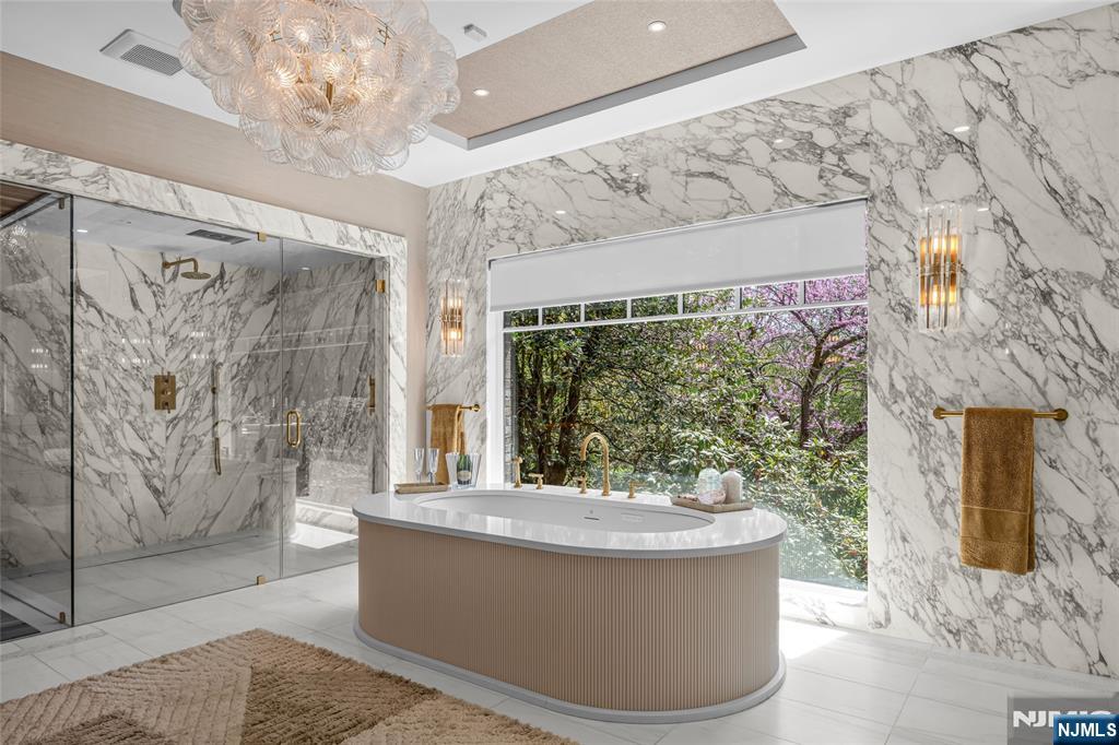 Masterfully designed, this sprawling English Country Manor seamlessly blends modern elegance, timeless architecture, and exceptional custom millwork. Set on 2 serene acres, this 9,200 SF estate, complemented by a 2,400 SF lower level, showcases exquisite interiors by renowned designer Jennifer McGee and offers the ultimate Saddle River retreat. A grand foyer with Grecian marble floors and a sweeping bridal staircase introduces an expansive layout designed for refined entertaining. The dramatic 2-story great room, anchored by a sophisticated wet bar and double French doors, flows effortlessly into a gourmet chef’s kitchen with custom cabinetry, oversized island, La Cornue Chateau 120 range, and radiant heated floors. The main level is further enhanced by a banquet-sized dining room, private office, and living/billiard room with stunning traditional details. The primary suite, immaculately renovated in 2024, is a true sanctuary boasting a fireplace, sitting room, oversized dressing room, and spa-like bathroom that is a masterwork of design, featuring a sauna, freestanding jacuzzi and radiant heat. Upstairs, 5 spacious bedrooms and a full laundry room provide comfort and convenience. Expansive lower level includes a temp-controlled wine cellar, gym, rec room, media room, and access to the heated 6-car garage. Outdoors, resort-style grounds showcase tranquil pond views, manicured gardens, a heated Gunite pool, bluestone patios and fire pit. Unmatched prestige & privacy await!