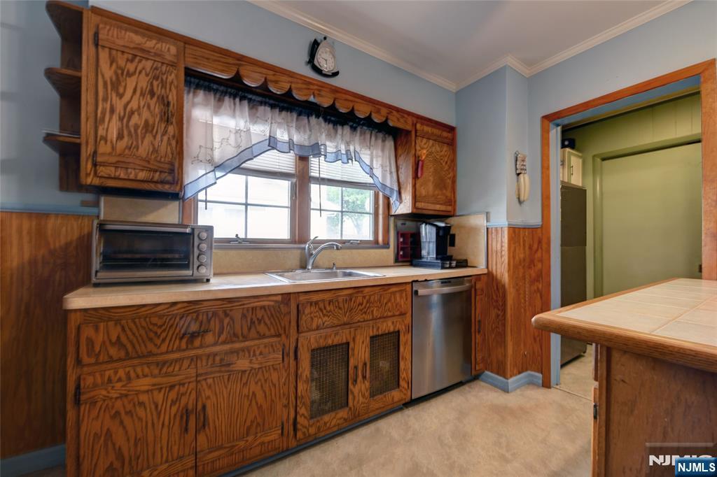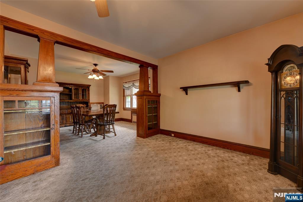Charming Dutch Colonial in prime Fair Lawn location. A welcoming front porch leads you to a generously sized Living Room. Custom wood columns and built in cabinetry separate the Living Room from the Dining Room that is well lit by a beautiful bay window providing plenty of natural light. The woodwork and details throughout the home is stunning! Owner says there are beautiful hardwood floors under the well worn carpeting. The Eat-In-Kitchen has plenty of cabinets and counter space with a pantry just off the kitchen. There is an enclosed back porch with access to the back yard., As well as a side door entry with access to the full partially finished basement with laundry and an additional toilet. Upstairs you will find an updated (2016) full bath, an oversized primary bedroom with a spacious walk-in closet and two additional bedrooms. This delightful 3-bedroom, perfectly blends classic charm with modern convenience. Nestled on a quiet, tree-lined street, yet just minutes from top-rated schools, parks, shopping and perfect for NYC commuting including a nearby Train Station.