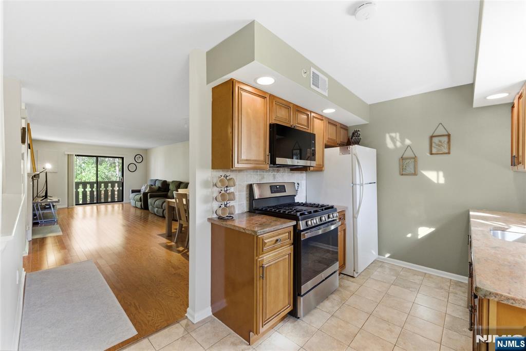 Enjoy low-maintenance living in this well-kept 2-bedroom, 2-bath condo located in the sought-after Ridge Gardens community. This home offers a bright, open layout with an updated kitchen with an open living and dining area, creating a comfortable space for both everyday living and entertaining. A wood-burning fireplace adds a cozy touch, while the covered private balcony provides the perfect place to relax. Additional features include in-unit laundry, parking, and extra storage for added convenience. Residents of Ridge Gardens have access to amenities such as an outdoor pool, tennis and pickleball courts, along with the ease of on-site management. Ideally situated for commuters and those who enjoy an active lifestyle, this location offers easy access to major highways, NJ Transit, shopping, and schools, with nearby parks and recreational spots providing year-round outdoor activities.