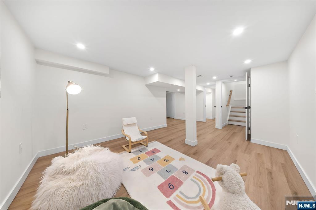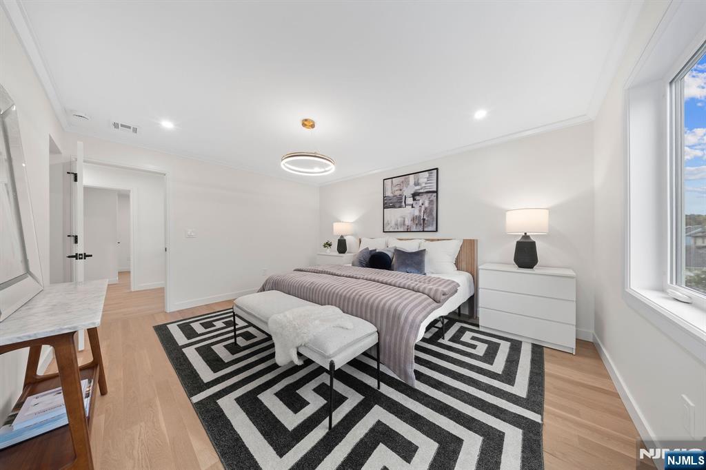 Discover modern luxury in this beautifully crafted new construction home, where refined design and high end finishes come together in perfect balance. Thoughtfully designed for both everyday living and stylish entertaining, this 4-bedroom, 3.5-bath residence offers elegant spaces, contemporary comfort, and timeless appeal. The main level welcomes you with elegant formal living and dining rooms, ideal for both everyday living and special gatherings. At the heart of the home is a stunning designer two toned kitchen featuring a quartzite waterfall island, stainless steel appliances, wine fridge, and sliding doors that open to a deck overlooking the paver patio and a spacious, fully fenced in backyard. Perfect for seamless indoor-outdoor entertaining. A first-floor guest bedroom and full bath add versatility for visitors, extended living, or multigenerational needs. Upstairs, the serene primary suite offers a private retreat with an ensuite bath, while two generously sized bedrooms, an additional full bath, & convenient second floor laundry complete the level with ease & practicality.The fully finished basement adds exceptional bonus space with a recreation room, half bath, den or home office, storage room and utility room. Finished with white oak hardwood flooring, solid core doors, modern details throughout & an attached one-car garage. This home is ideally located near major highways, NYC transit, shopping, dining & houses of worship. A home this special is not to be missed!