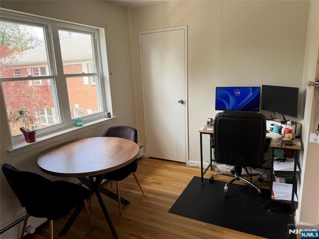 Charming 1 bedroom condo, where modern comfort meets convenience. This move-in ready gem boasts a bright an airy living space with fresh paint and beautiful hardwood flooring throughout. Enjoy cooking in the updated kitchen, featuring sleek stainless-steel appliances, including a dishwasher. For added convenience, a dryer and a washer are located within the unit. The well-designed layout includes a spacious living room, an inviting eat-in kitchen, and a full bath, situated with easy access to NYC transportation this home is also close to excellent schools, parks, a town pool, and a picturesque town lake.