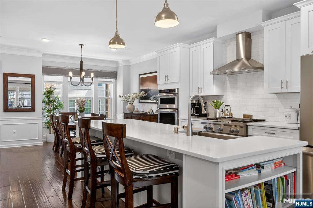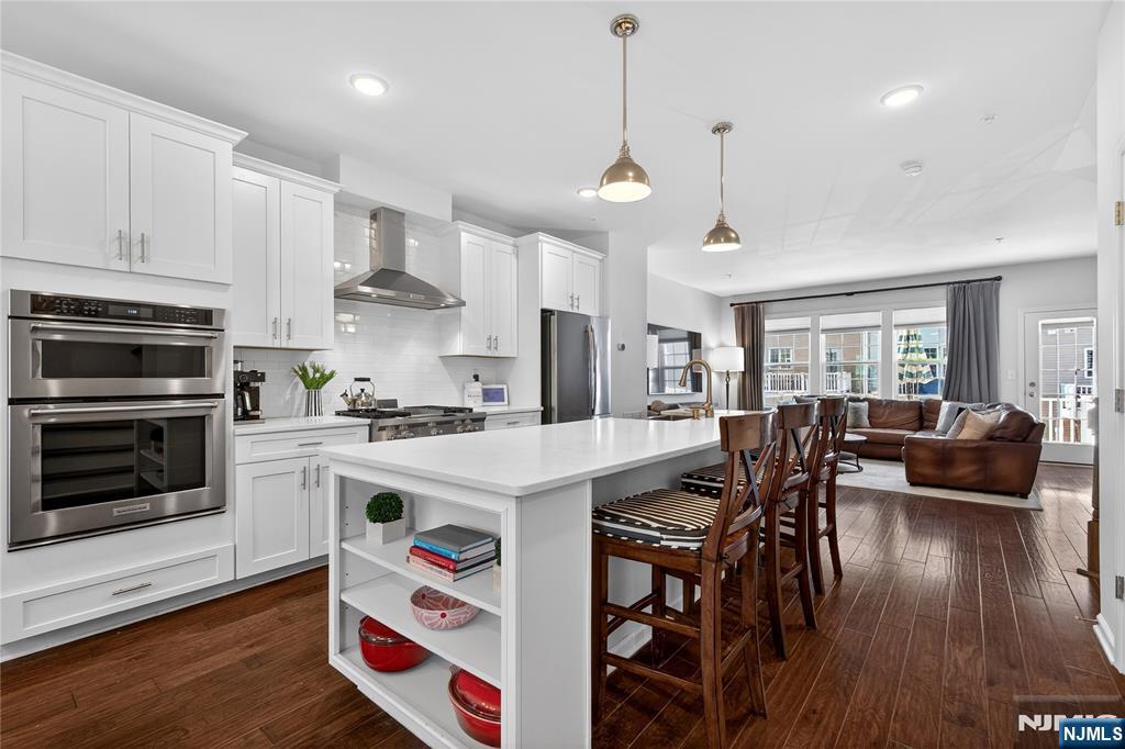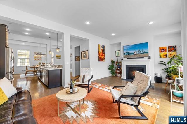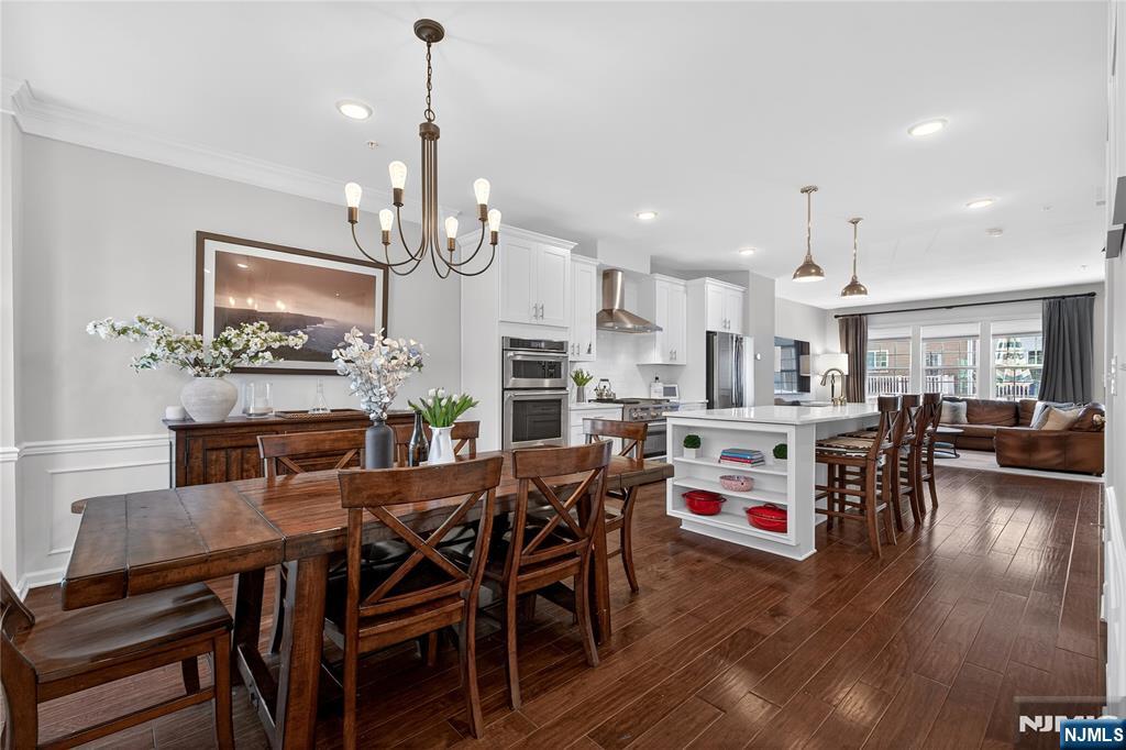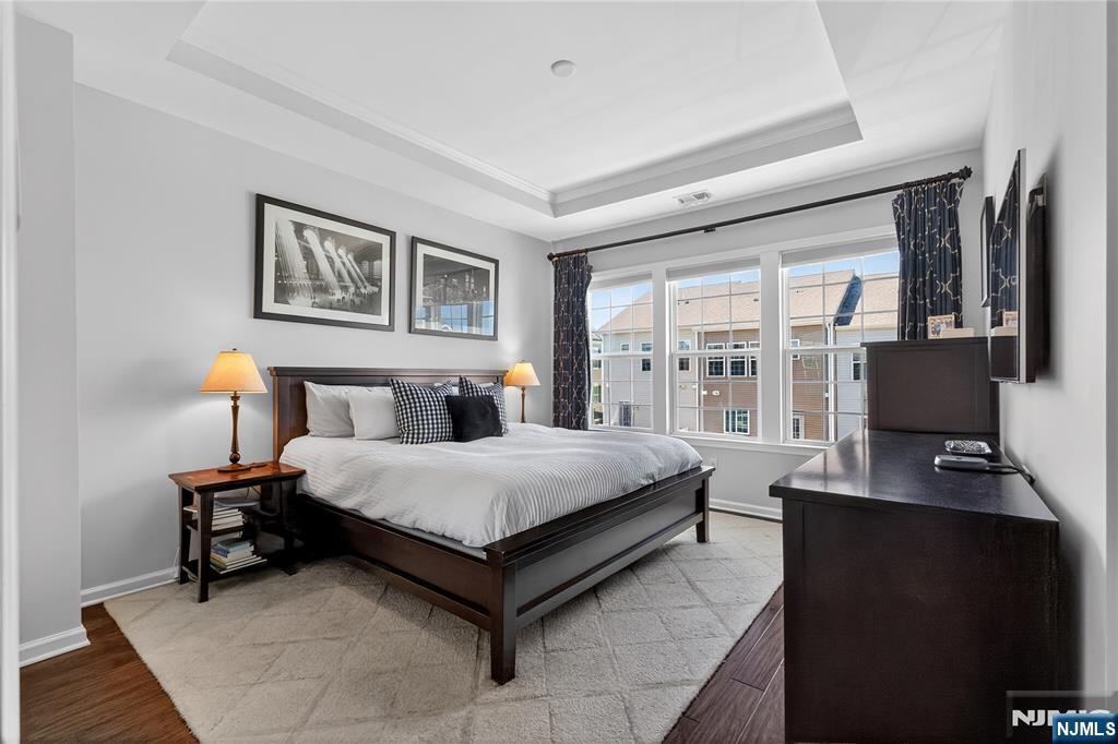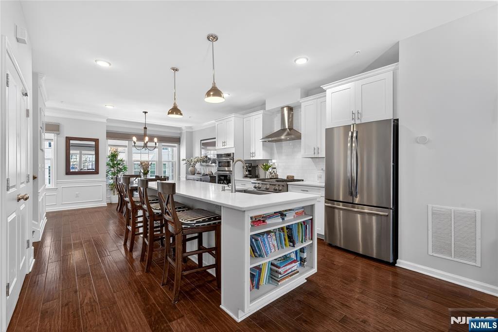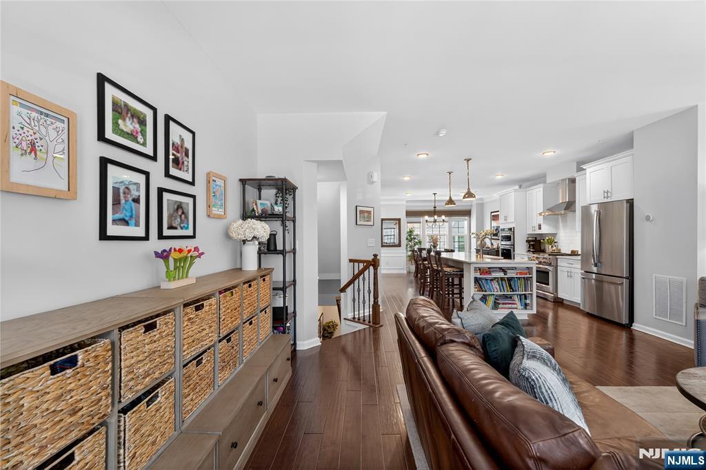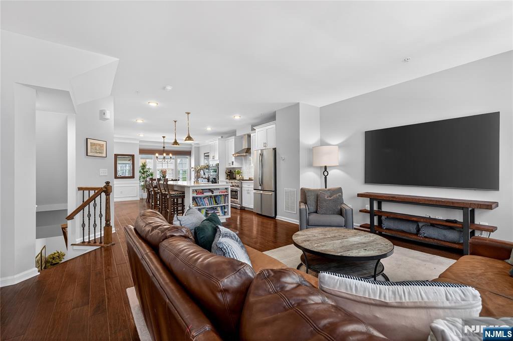 *Call Charmy Morzaria at 609.619.2198 to tour this home* Welcome to the FINEST & sought after Colonial Style Luxury townhome located at Wesmont Station Community of Wood Ridge. Just 30 mins from Manhattan, close to major turnpike and freeways, it offers ease of commute; town has its train station at just 5 mins walk and option of two buses going into Manhattan that runs every 10-15 mins. This is a rare to come by Mark Layout with high end and custom updates throughout; it offers an amazing sized 3 bedrooms, plus an office/bonus room provides the perfect setup for working from home, a guest room, or additional living space. It has a total of 2 full and 1 half baths, 4 park space; 2 car garage and 2 car driveway. 1st floor offers beautiful open layout with modern updated kitchen, pantry and oversized island, it also has half bath, dining space for large gatherings, massive living area and a great sized outdoor deck. 3rd floor offers primary bedroom w/rare custom full bath, large custom closet and 2 additional great size bedroom with an additional 2nd full bath; this level also has laundry room w/storage. A hassle-free community living at its best, it offers plenty of convenient options; coffee shop, grocery store, liquor shop on the premises, kids, playground, jogging and walking paths, sports fields and so much more.